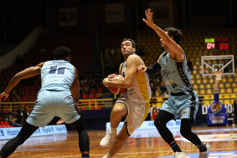 Corvalan pega rebote ofensivo.