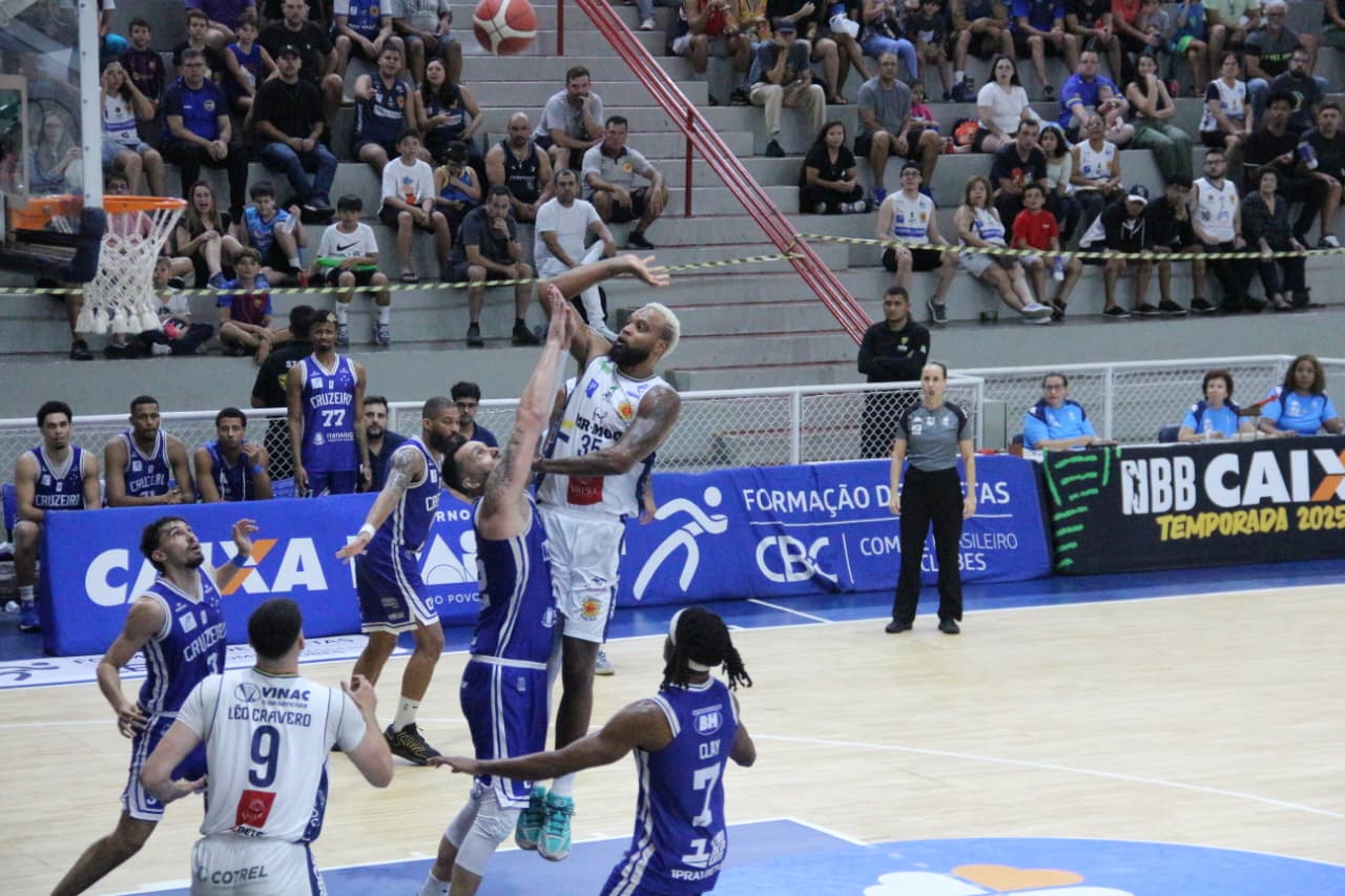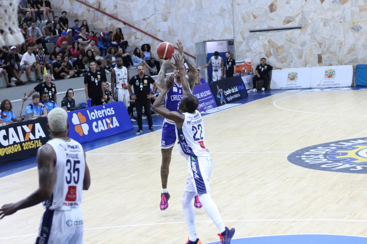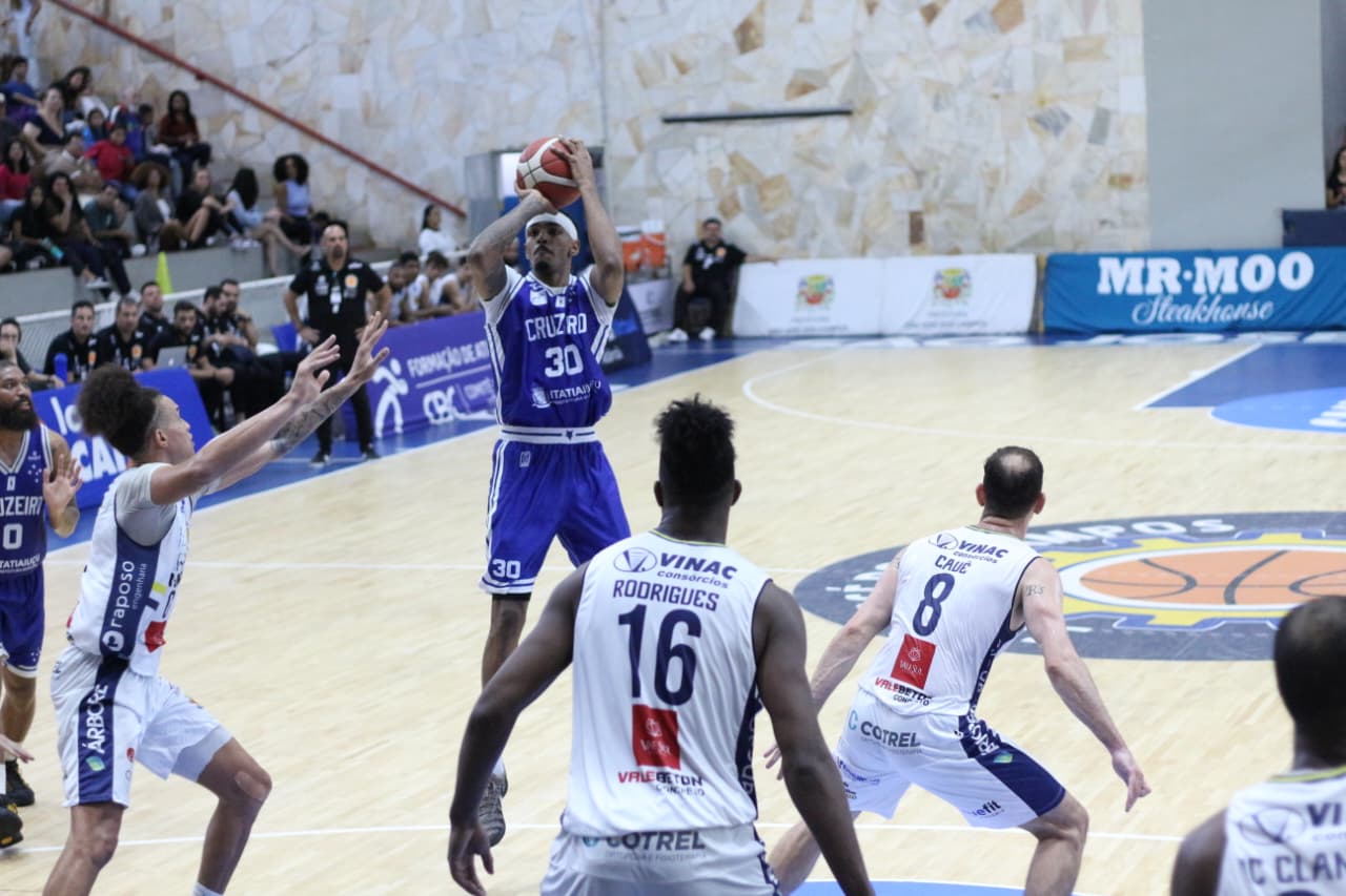 O segundo período manteve o tom de equilíbrio. O Mr. Moo São José Basketball continuou orbitando em torno da cadência imposta por Cauê Verzola, que controlou o ritmo, enquanto McClanahan começou a mostrar repertório ofensivo. A estratégia do Cruzeiro de ataque distribuído ficou ainda mais evidente, com sete jogadores pontuando no quarto, dificultando os ajustes defensivos joseenses e evitando a concentração de marcação. O domínio mineiro na parcial, vencida por 22 a 18, permitiu ao Cabuloso construir uma vantagem de cinco pontos antes do intervalo: 49 a 44.
