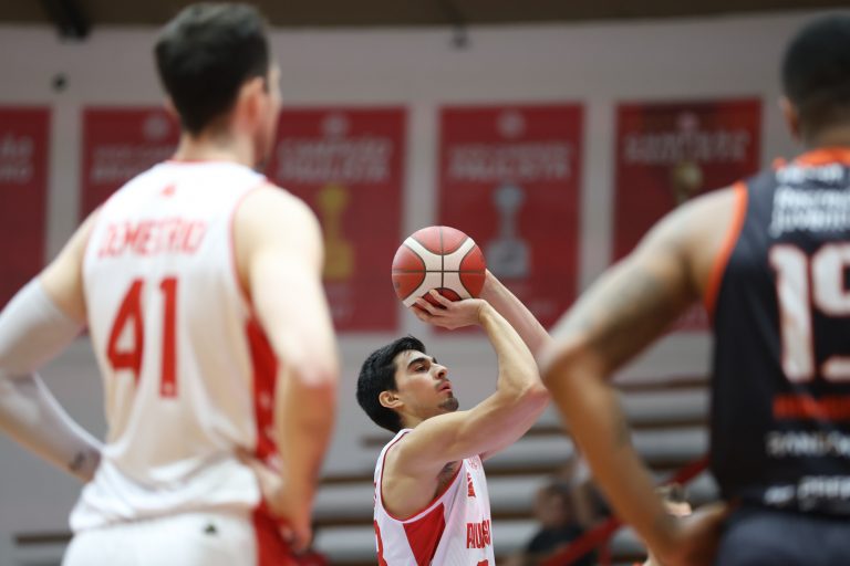 Fabrizzio acerta arremesso de dois pontos.