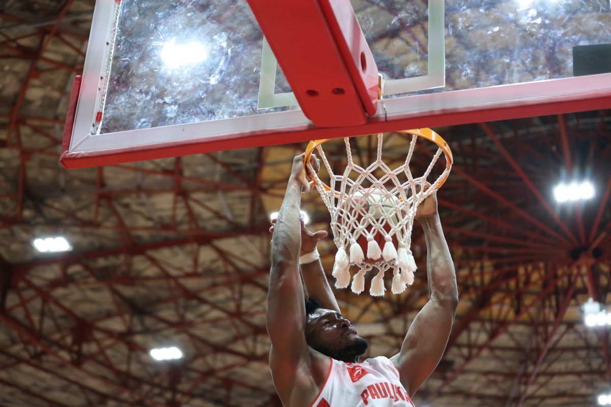 Macedo pega rebote ofensivo.