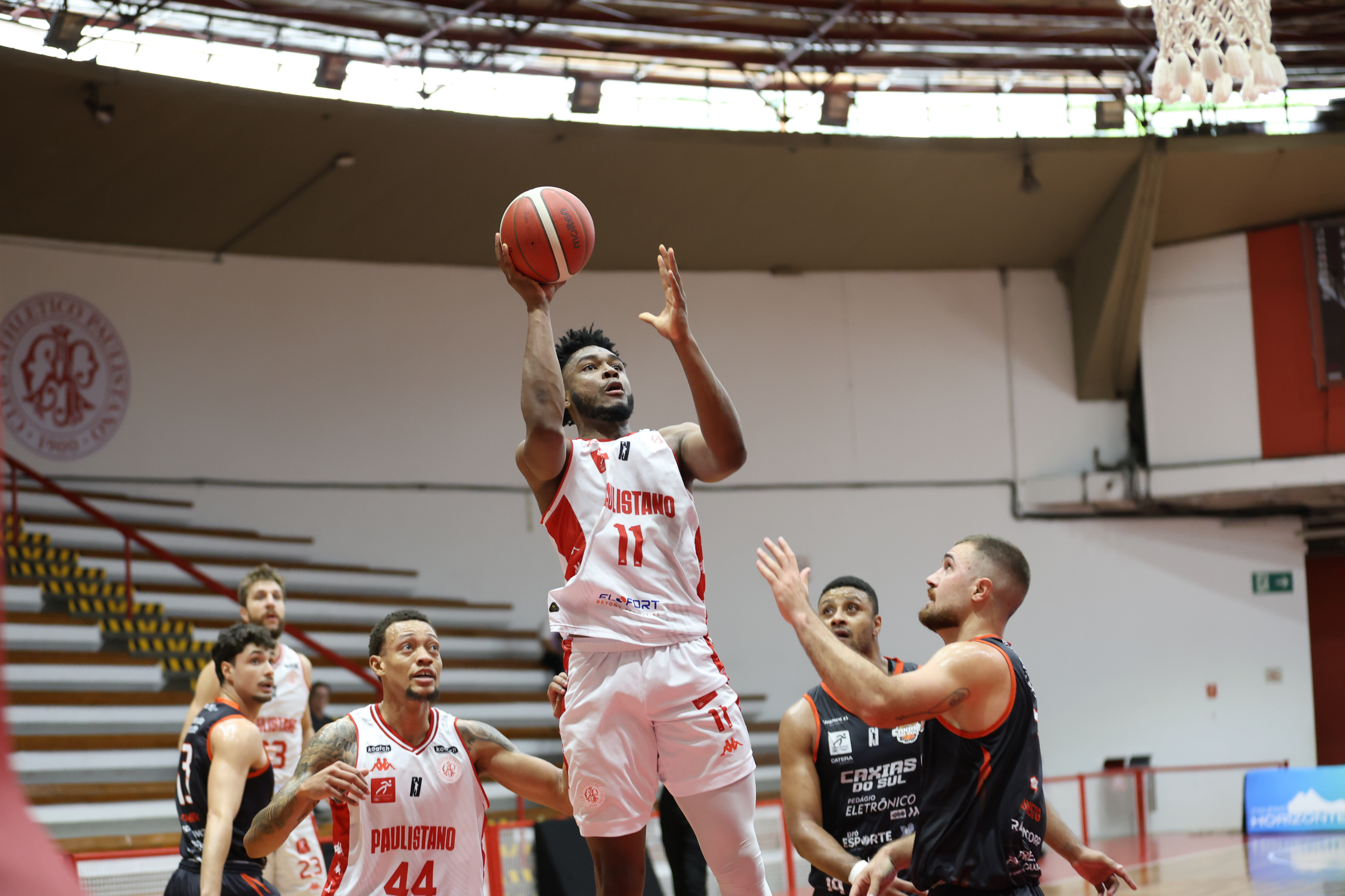 Henrique Seixas abre caminho para o triunfo com excelente aproveitamento na bola tripla, Paulistano segura reação do Caxias do Sul Basquete no segundo tempo e alcança sétima vitória