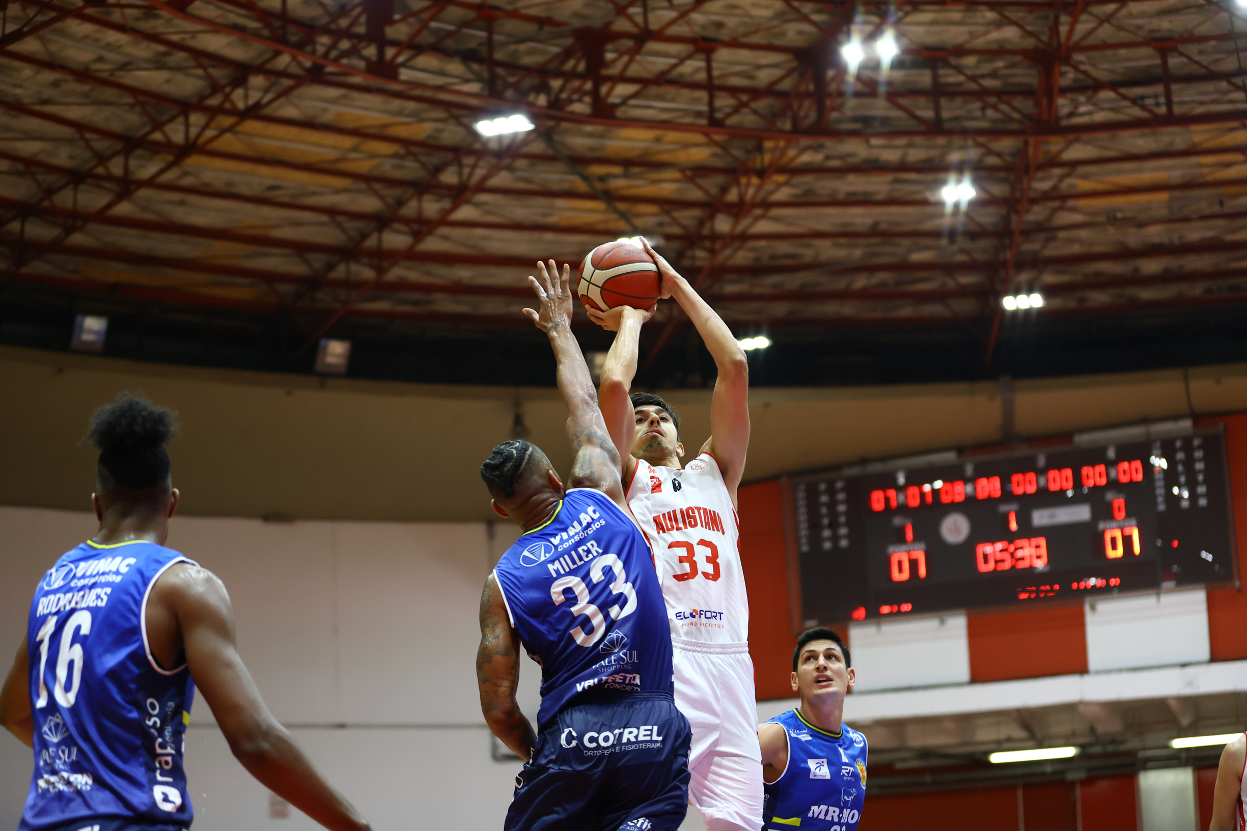 Paulistano pega rebote ofensivo.
