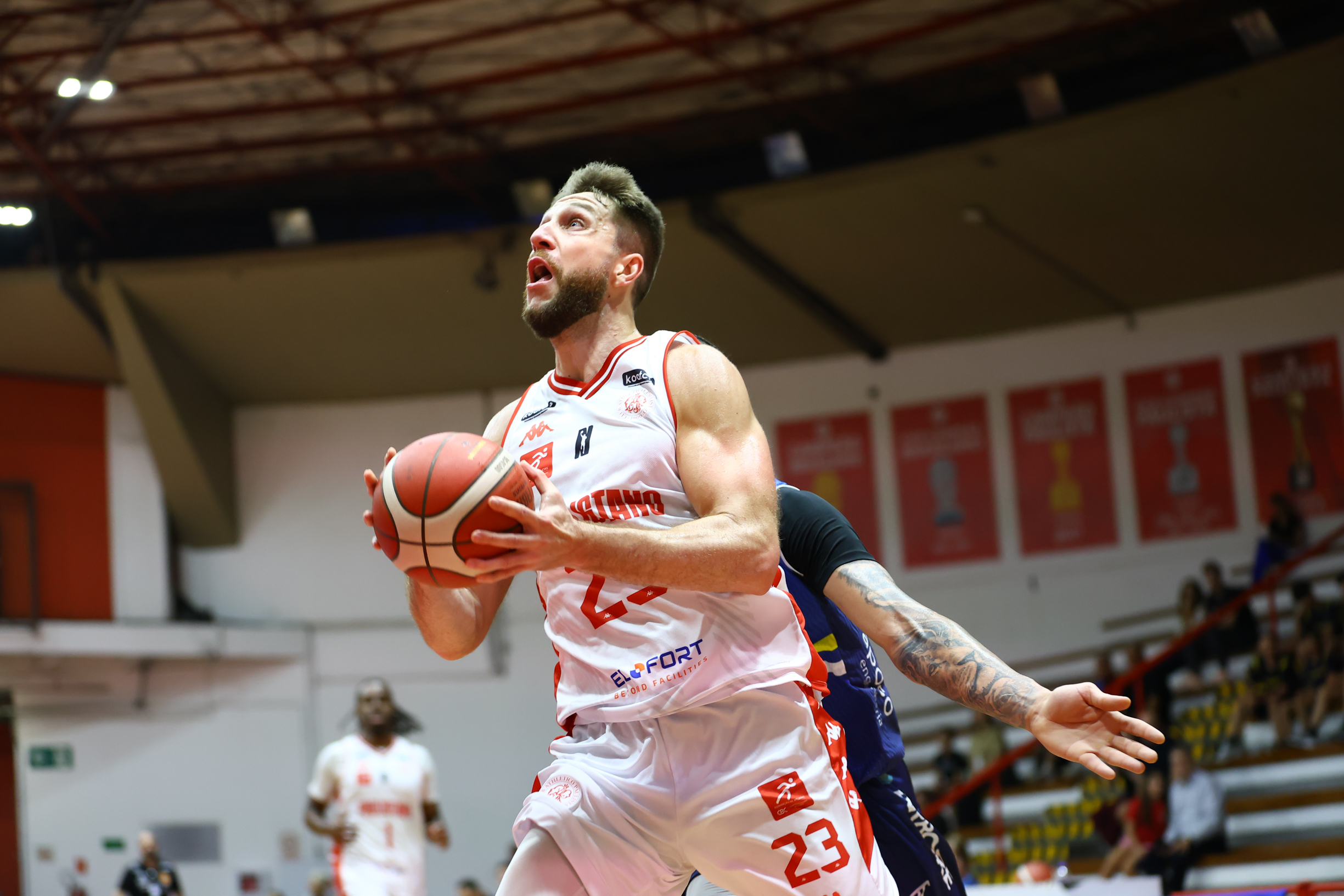 Maique pega rebote ofensivo.