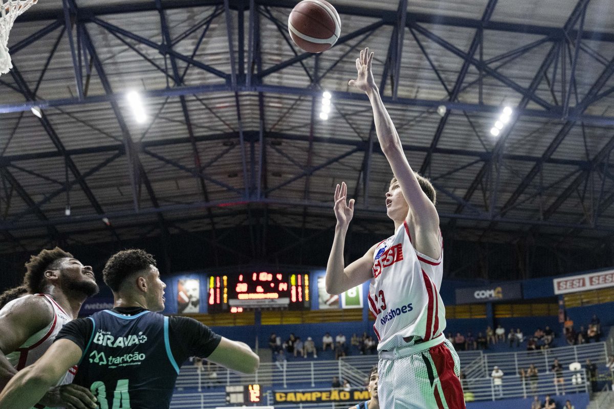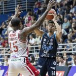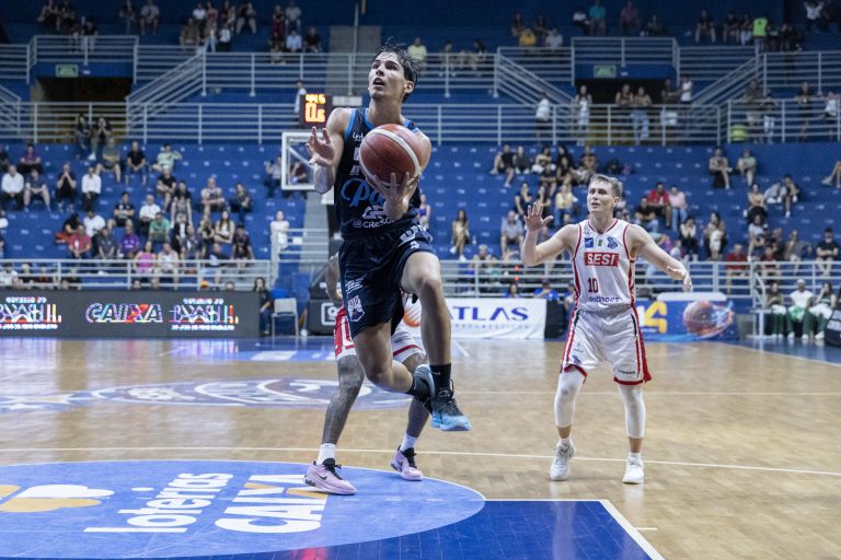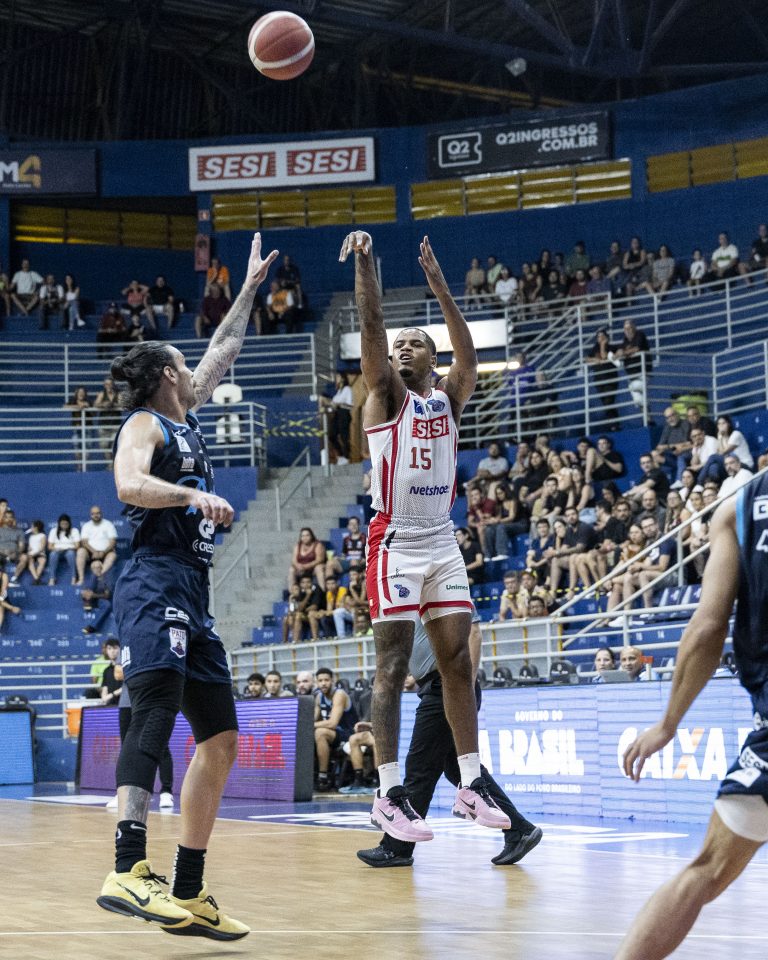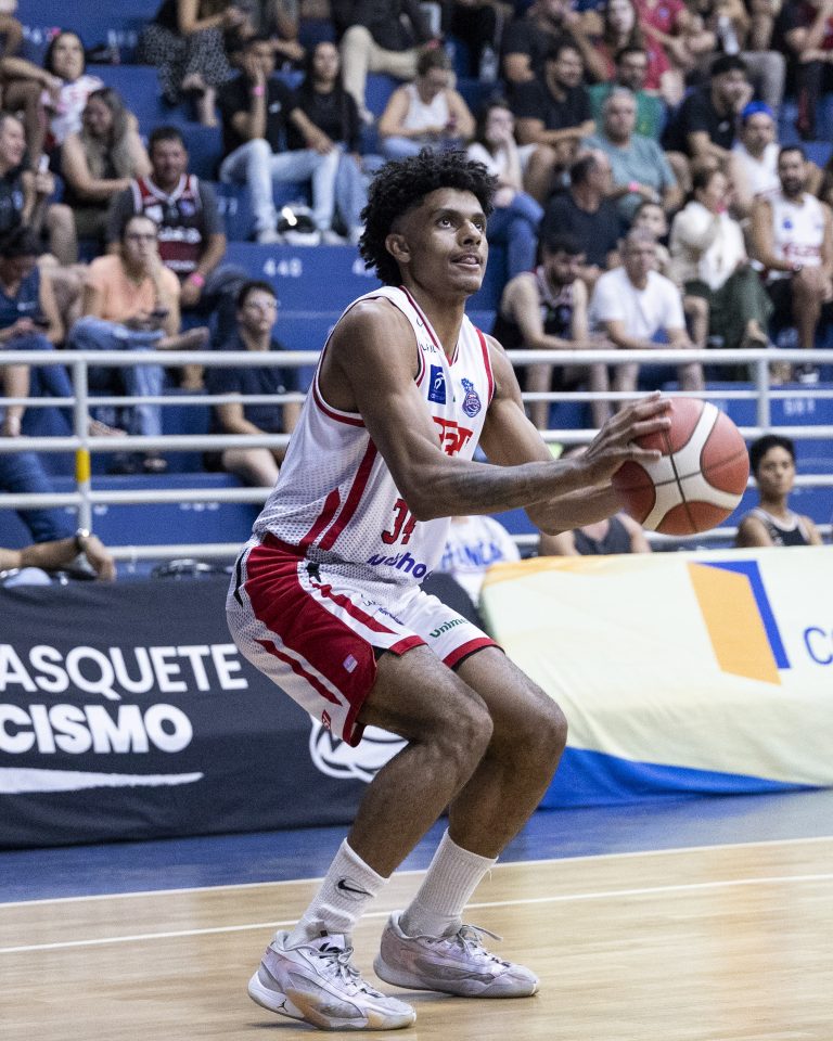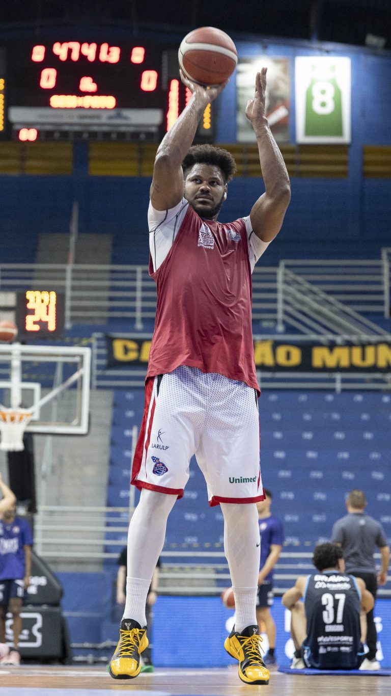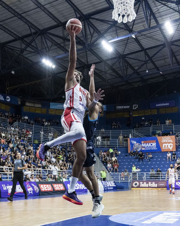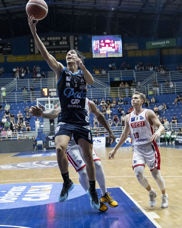 Lucas Dias acerta arremesso de dois pontos.