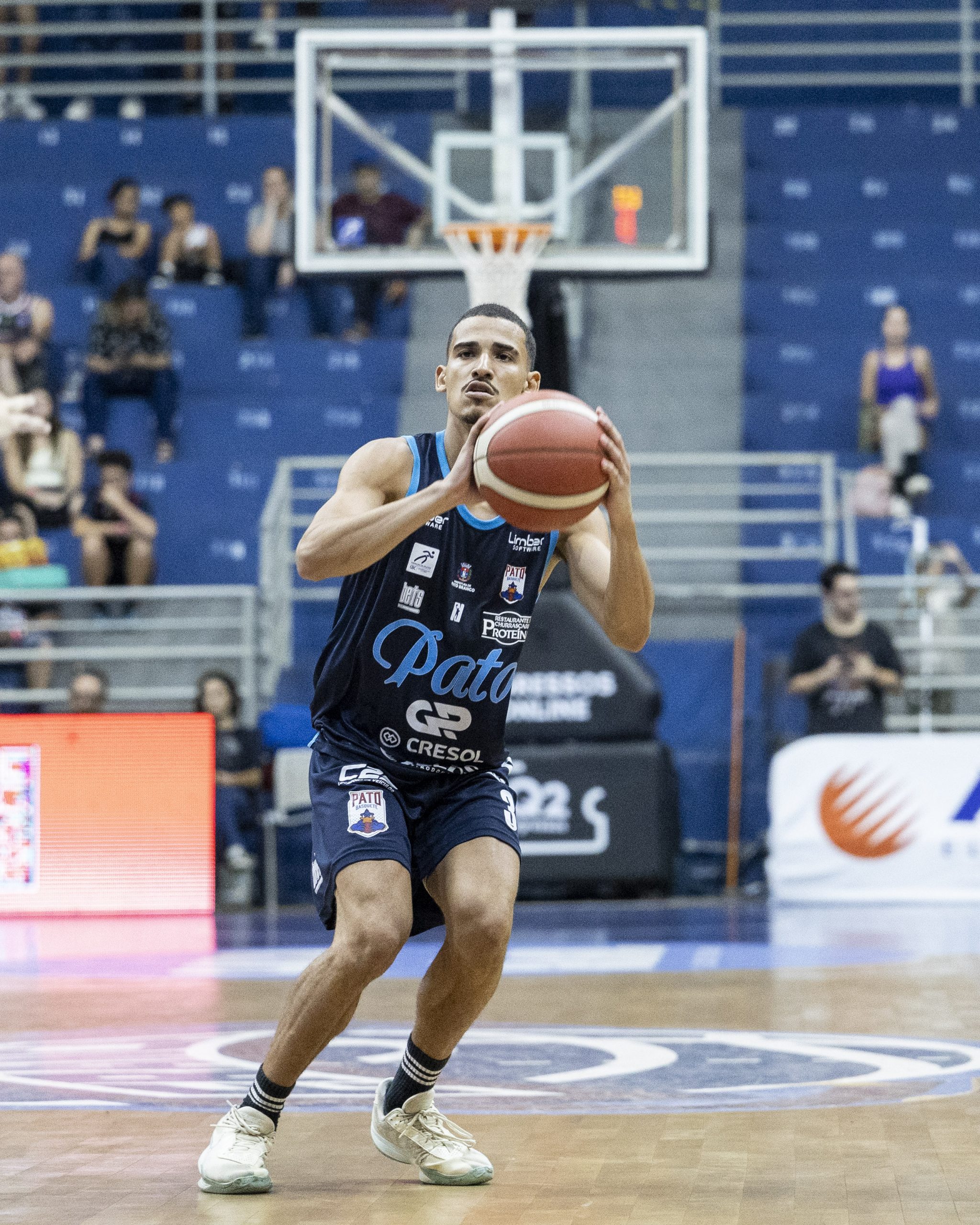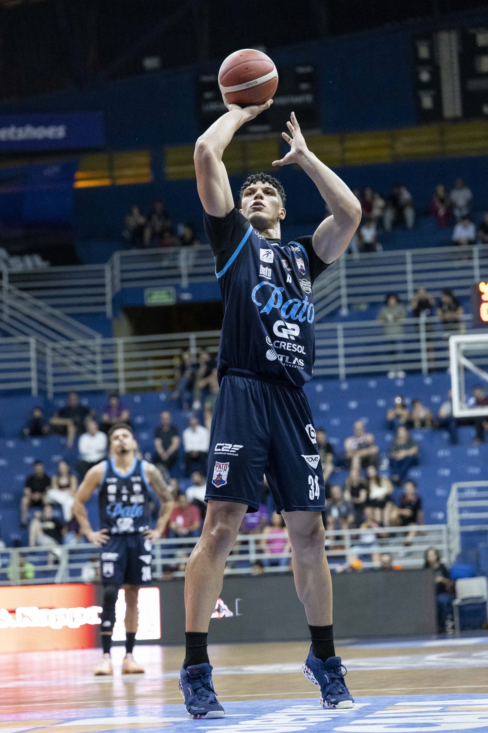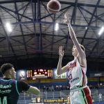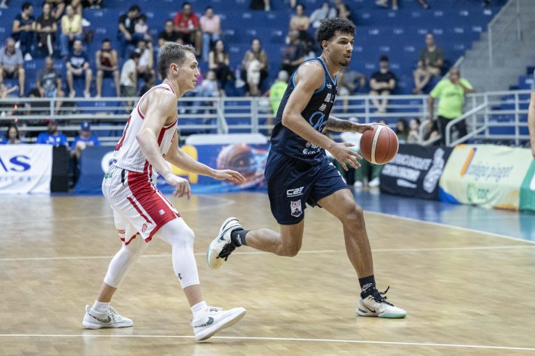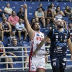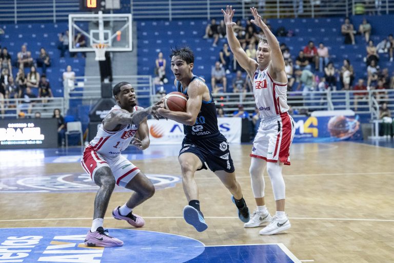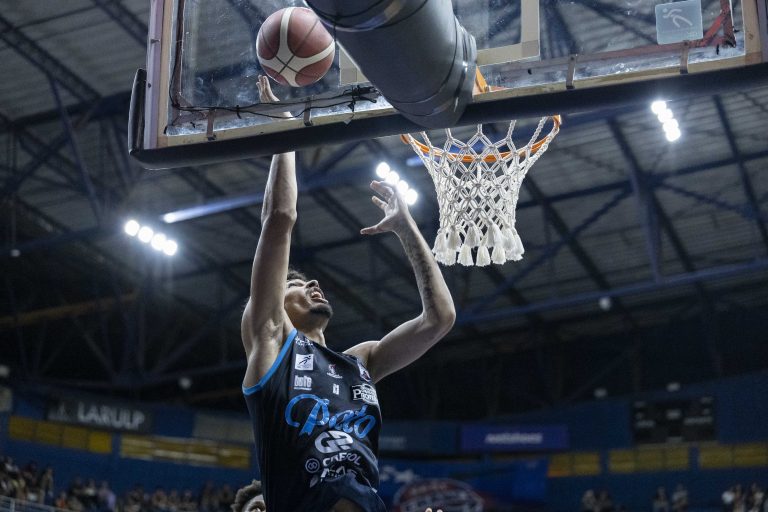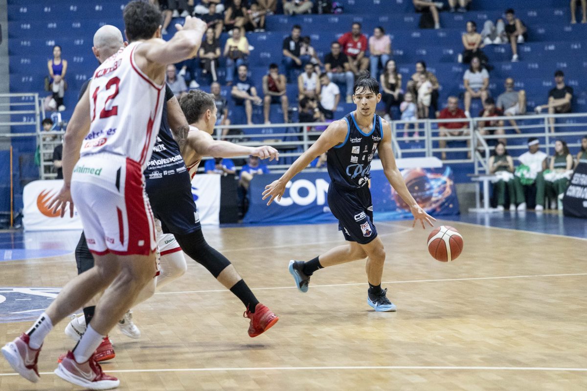 Lucas Dias acerta arremesso de dois pontos.