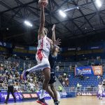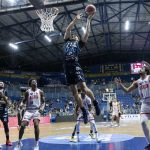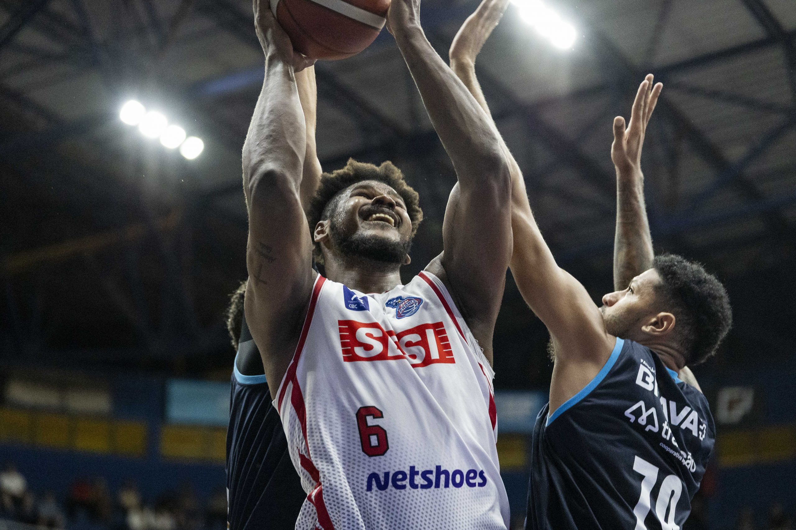 Franca pega rebote ofensivo.