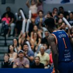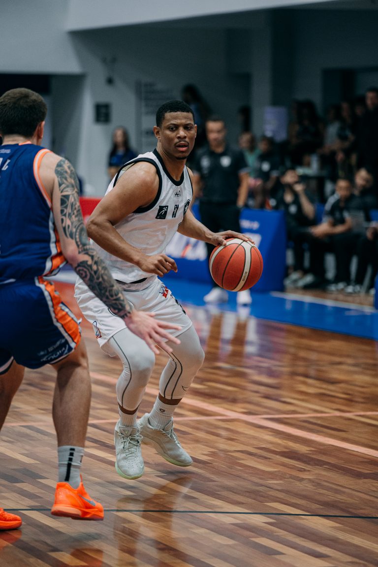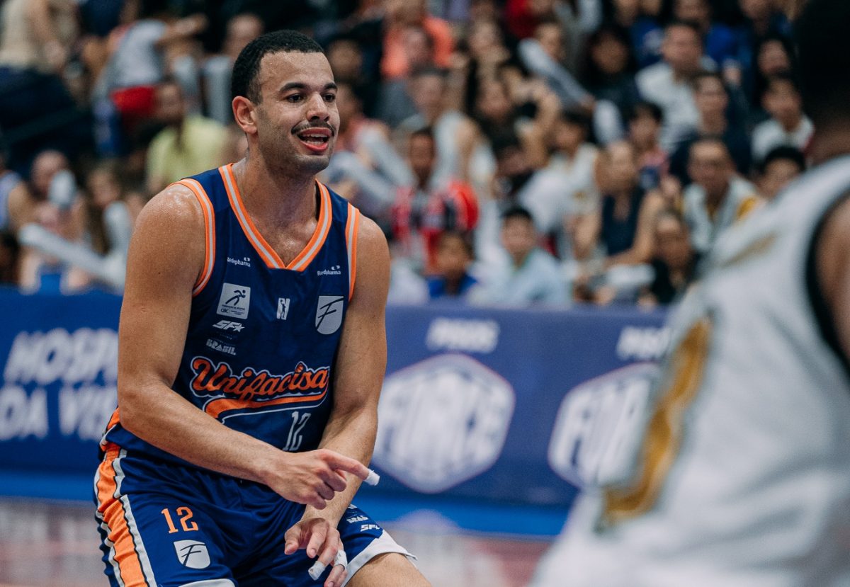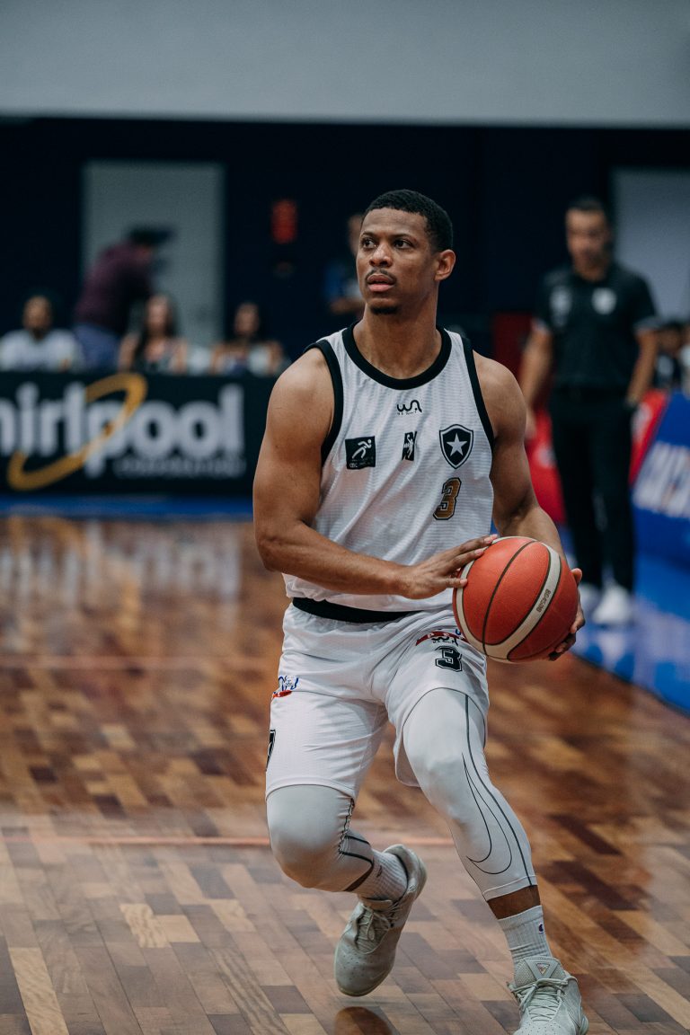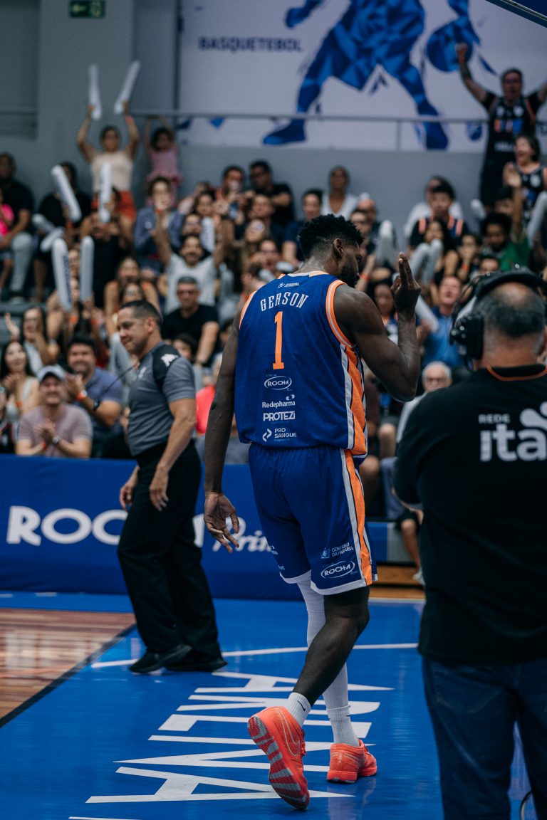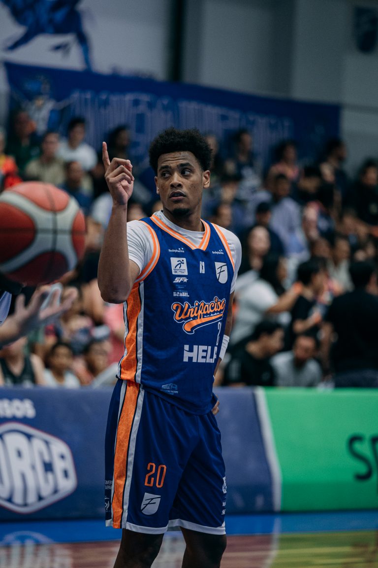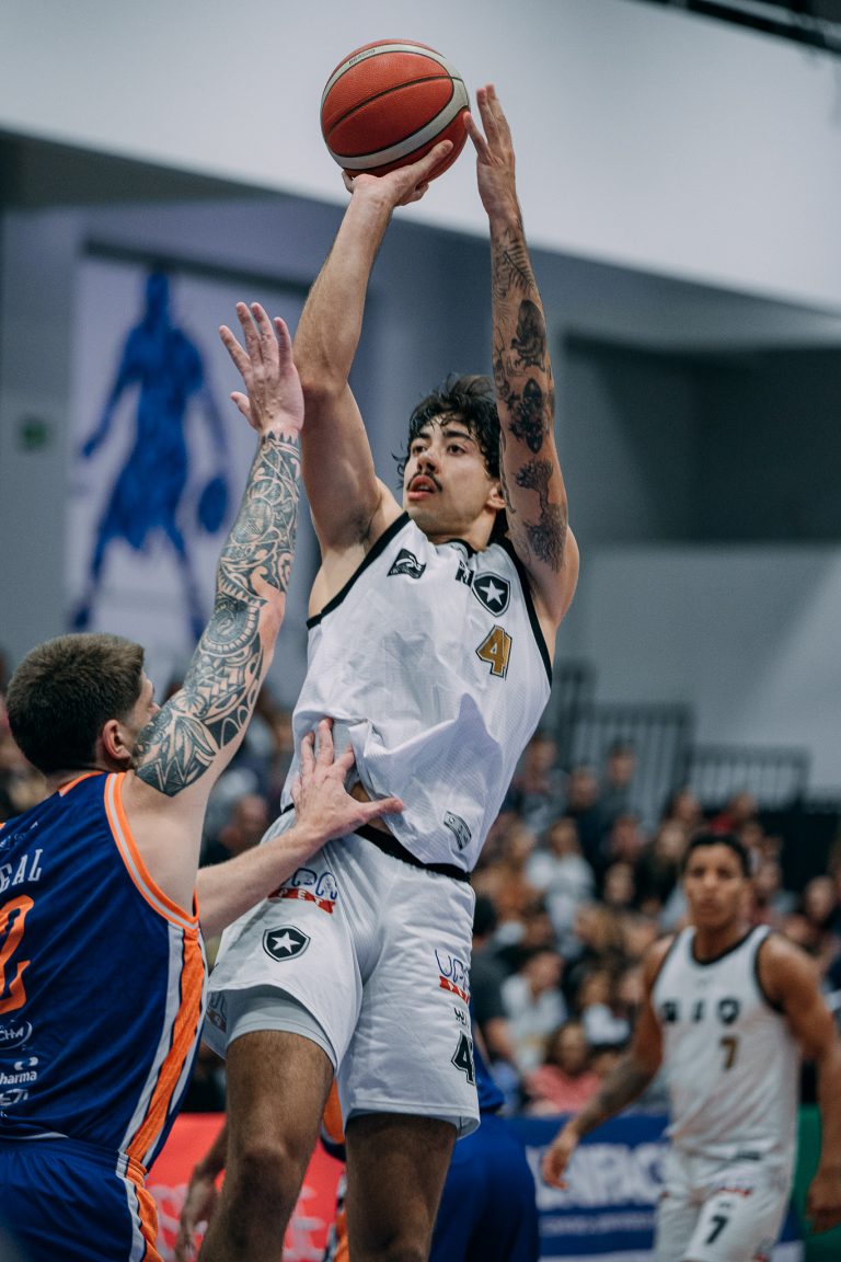 Emanuel acerta arremesso de dois pontos.
