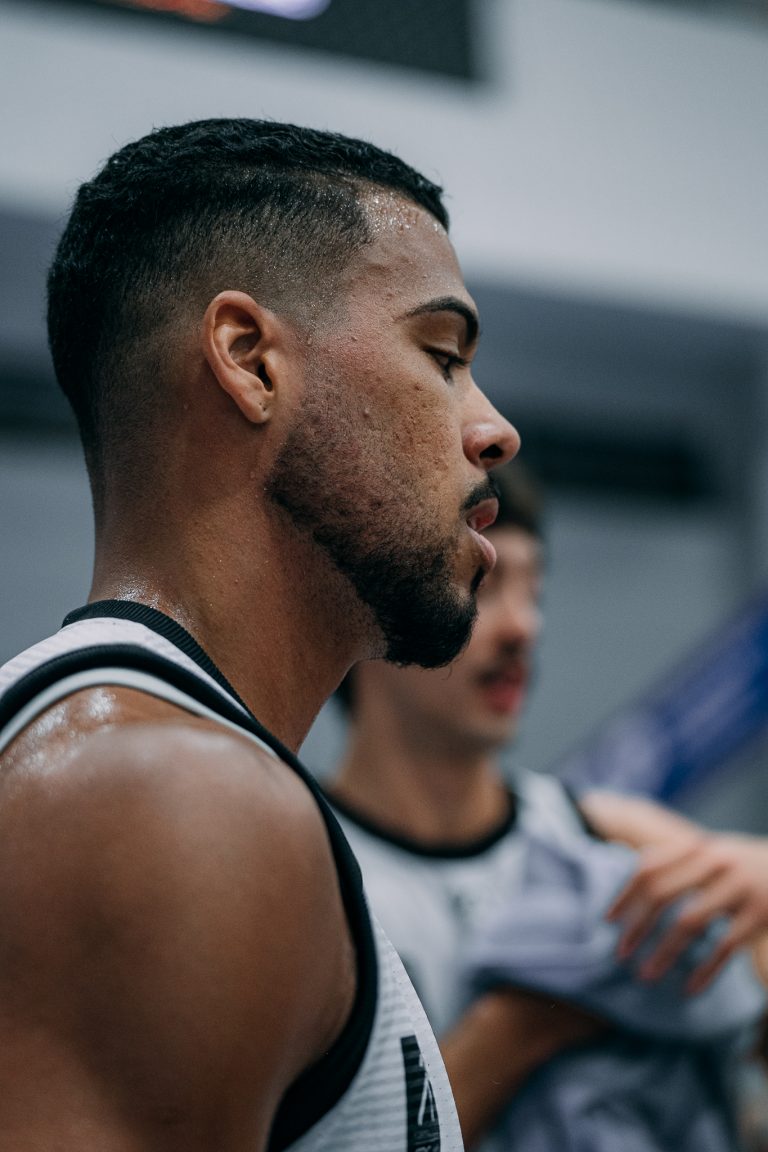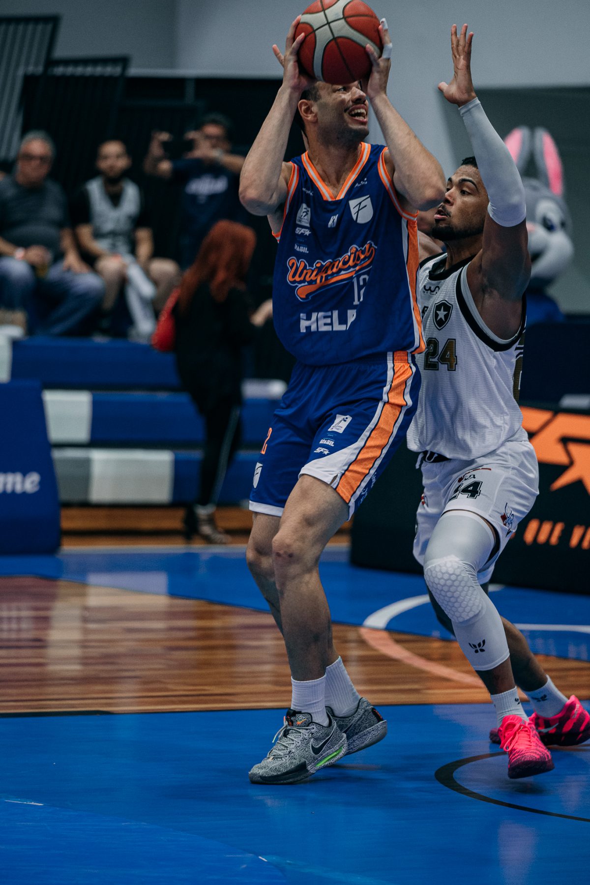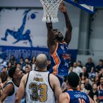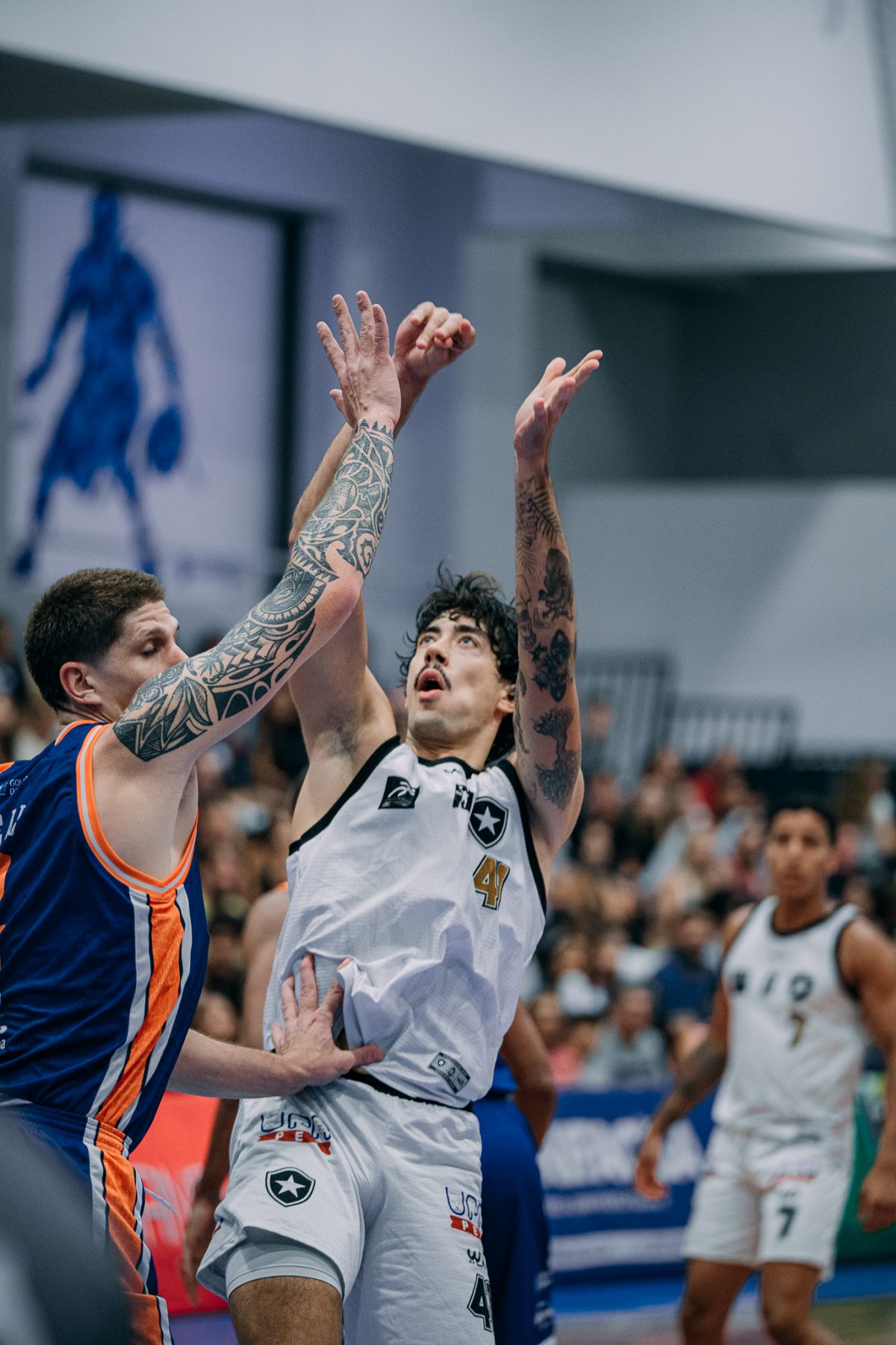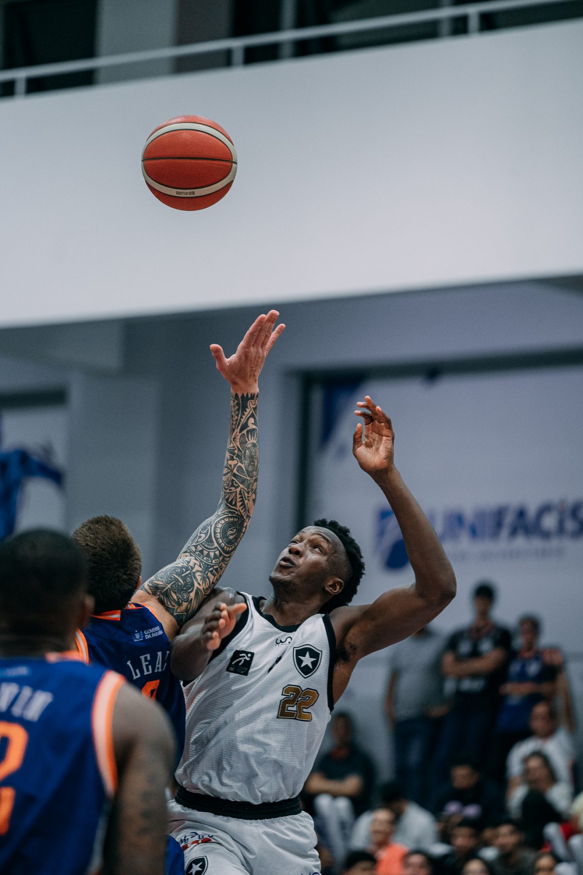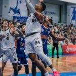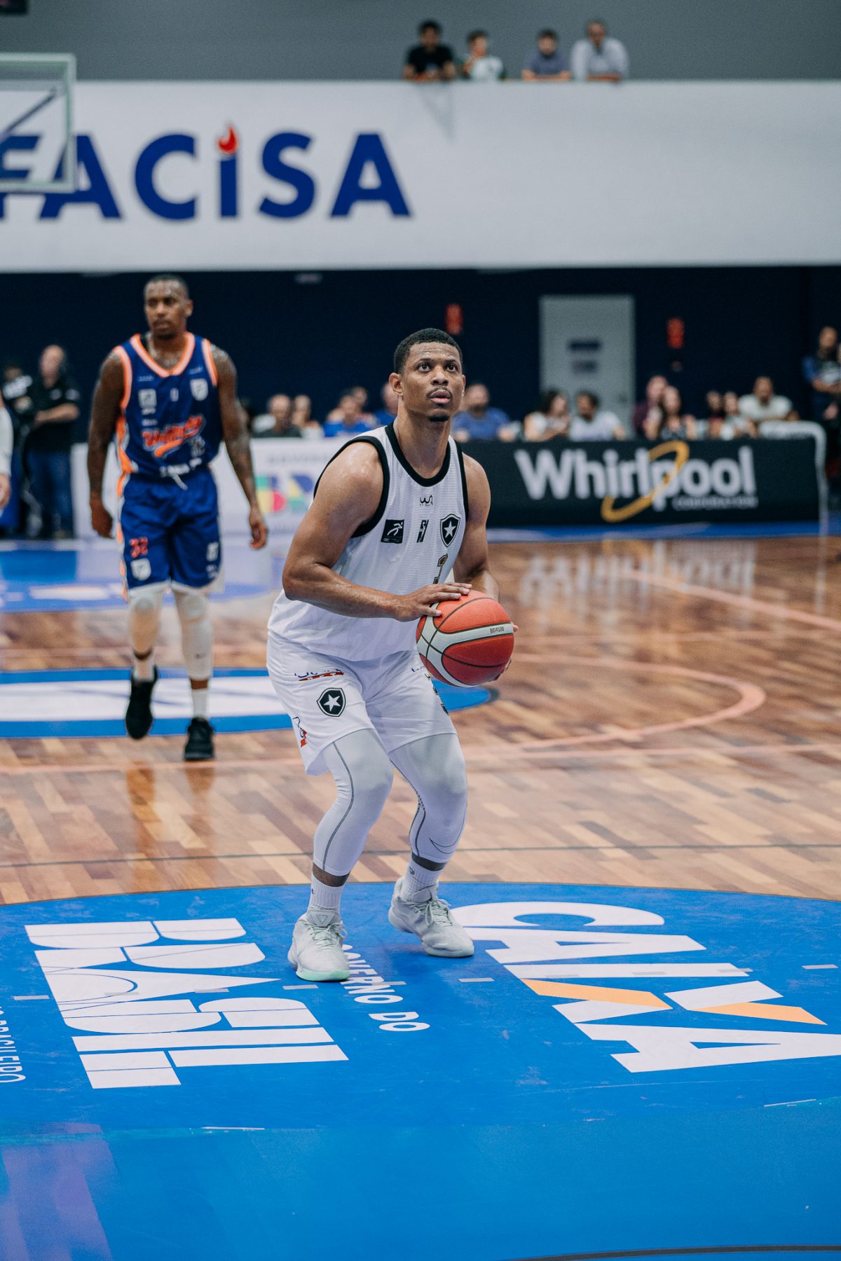 Emanuel acerta arremesso de dois pontos.