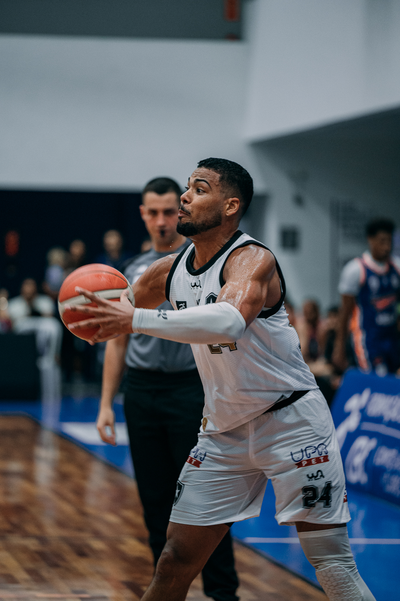 É de três! Emanuel acerta arremesso de três pontos.