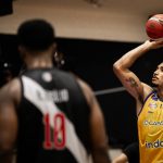 Salsamendi acerta arremesso de dois pontos.