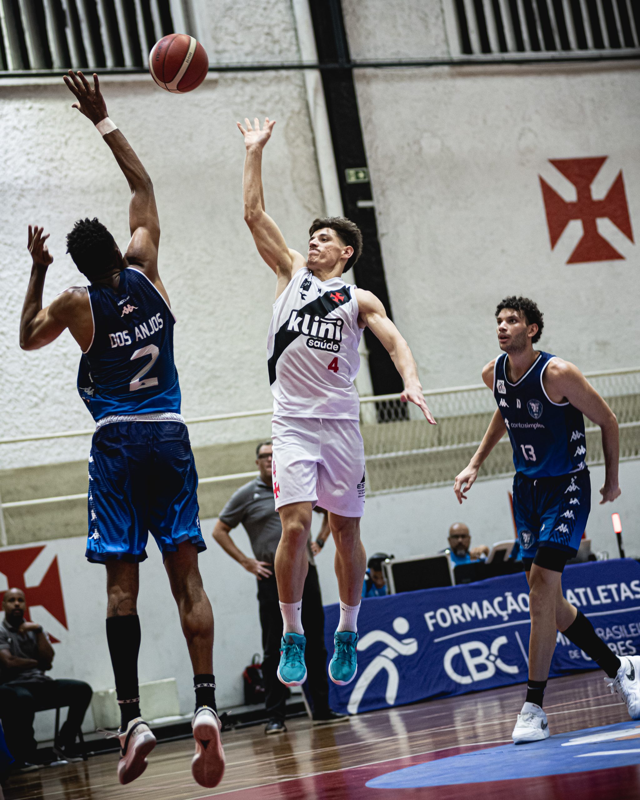 O primeiro período foi marcado pelo equilíbrio em São Januário. O Vasco começou melhor, explorando muito bem o jogo interno com Thiago Mathias, que comandou as ações ofensivas no garrafão. O Conta Simples Rio Claro, porém, ajustou sua defesa ao longo do período e conseguiu igualar o ritmo da partida. As duas equipes insistiram nos arremessos do perímetro, especialmente o time paulista, mas com baixo aproveitamento, o duelo foi parelho na parcial inicial (16 a 15), sem grandes vantagens no placar.