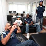 Jogadores do Palmeiras jogam video-game com Claudiano Pantalão, morador da Casa -