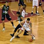 João Santos erra tentativa para três pontos.
