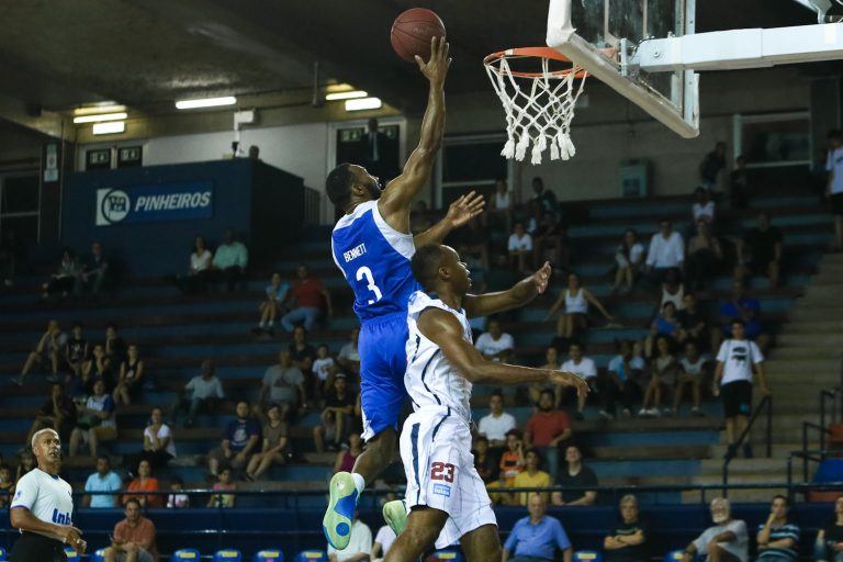 Jogada de mestre: O Pinheiros contou com uma bela jogada para assumir a liderança ao final do primeiro tempo. No último lance do segundo quarto, Hiumberto acertou uma bola de três pontos no estouro do cronômetro e colocou os donos da casa em vantagem (45 a 43).