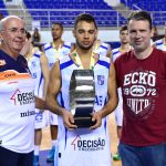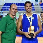 Lucas Dias recebeu o troféu de MVP da Final de Cadum, ex-jogador e atual comentarista das transmissões web da LNB -