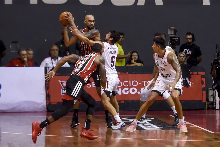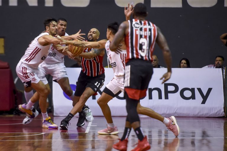 Em grande jogo no Tijuca, São Paulo vence Flamengo e abre 1-0 nas semifinais do NBB 15; jogo 2 será na próxima segunda (15/5), às 20h, no Ginásio do Morumbi, com transmissão do SporTV
