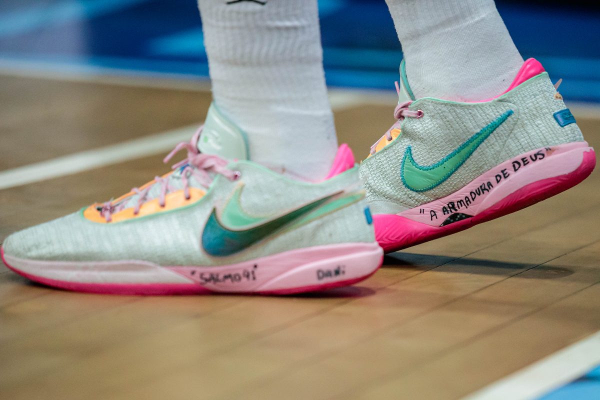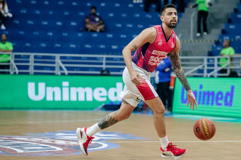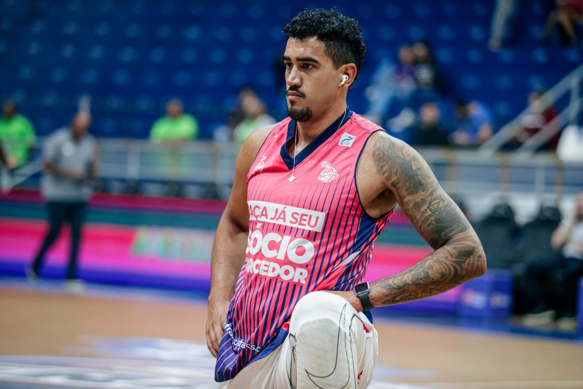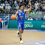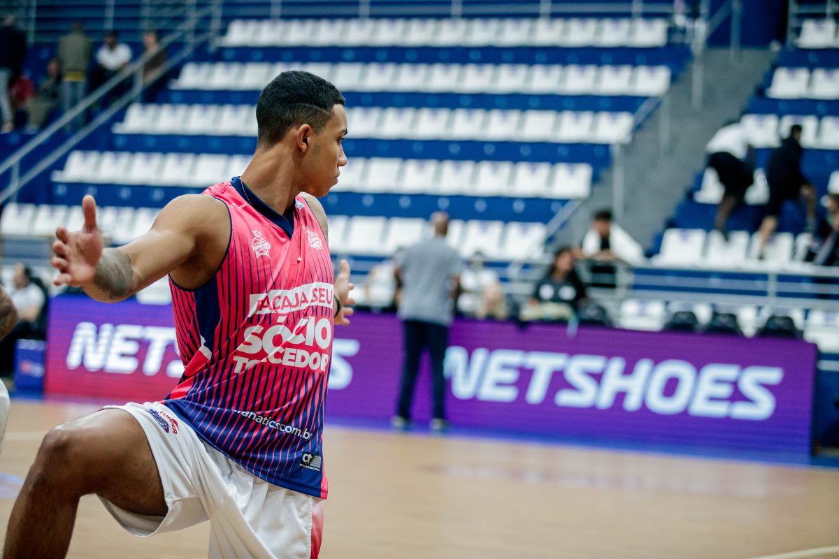 Lucas Dias erra tentativa para três pontos.