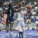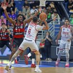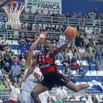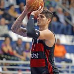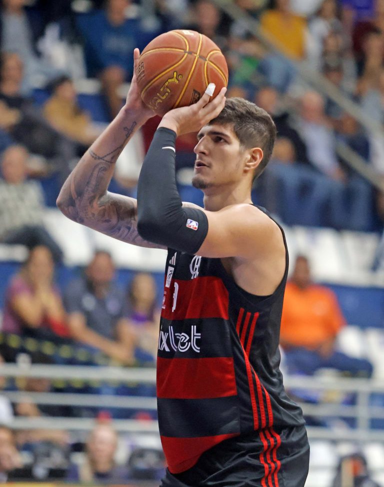Gabriel Jaú acerta arremesso de dois pontos.