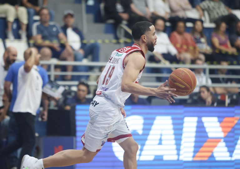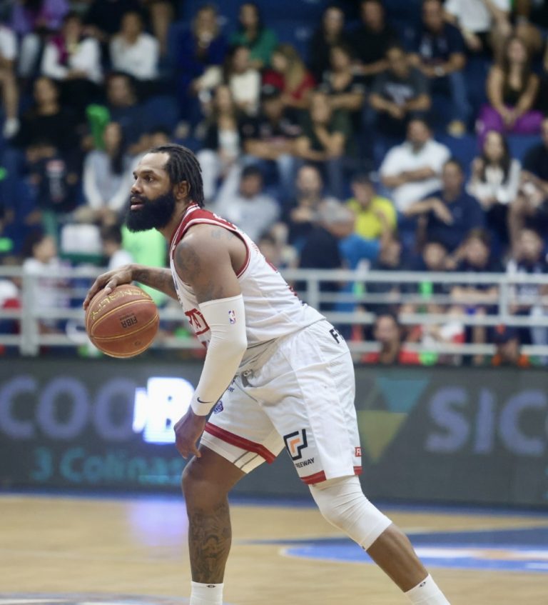 Devon Scott se esforça para salvar uma bola quase perdida. Foto: Célio Messias/LNB -