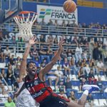 Gui Deodato partindo para cima do time de Franca, invadindo o garrafão e buscando a cesta. Foto: Celio Messias/ LNB -
