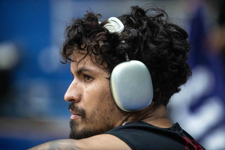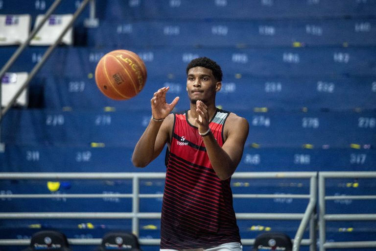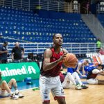 Jhonatan pega rebote defensivo.