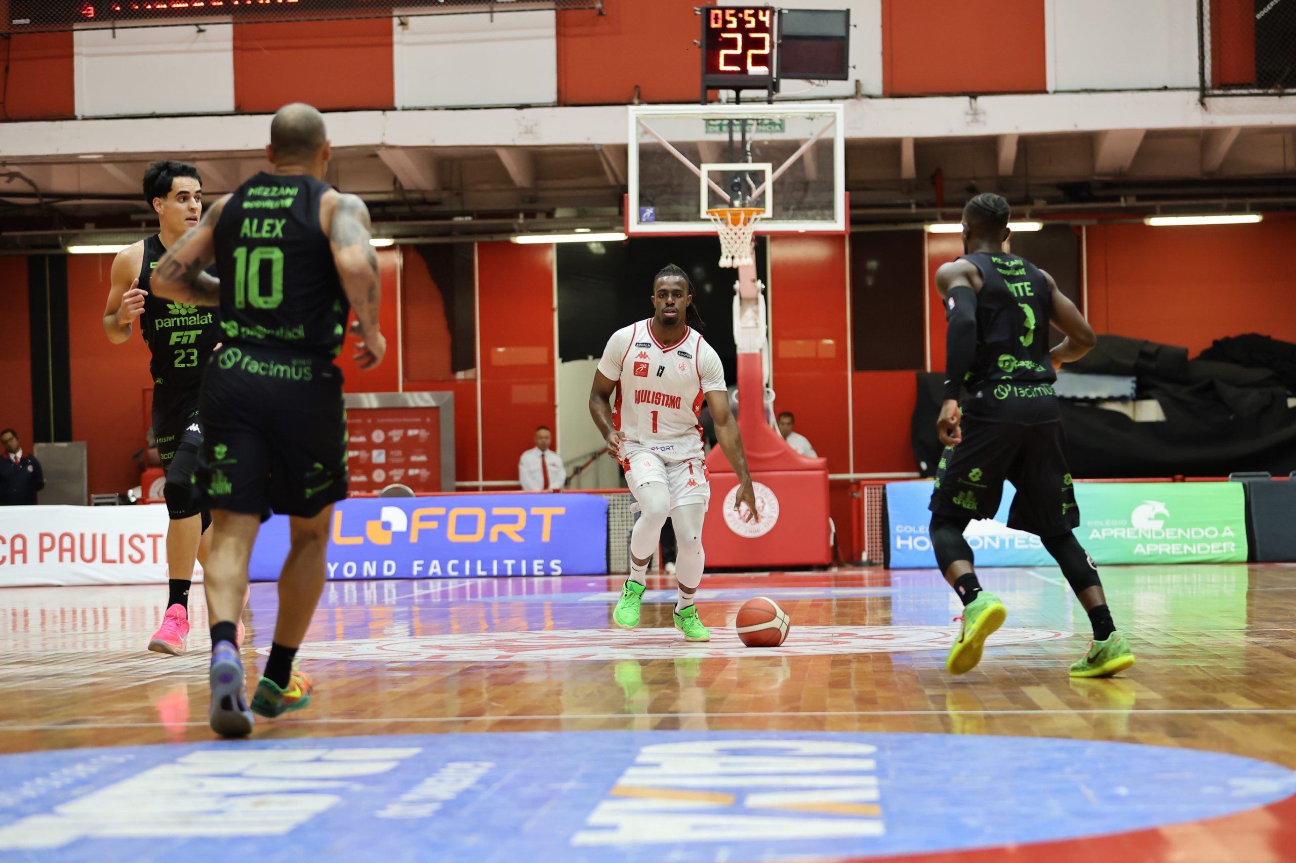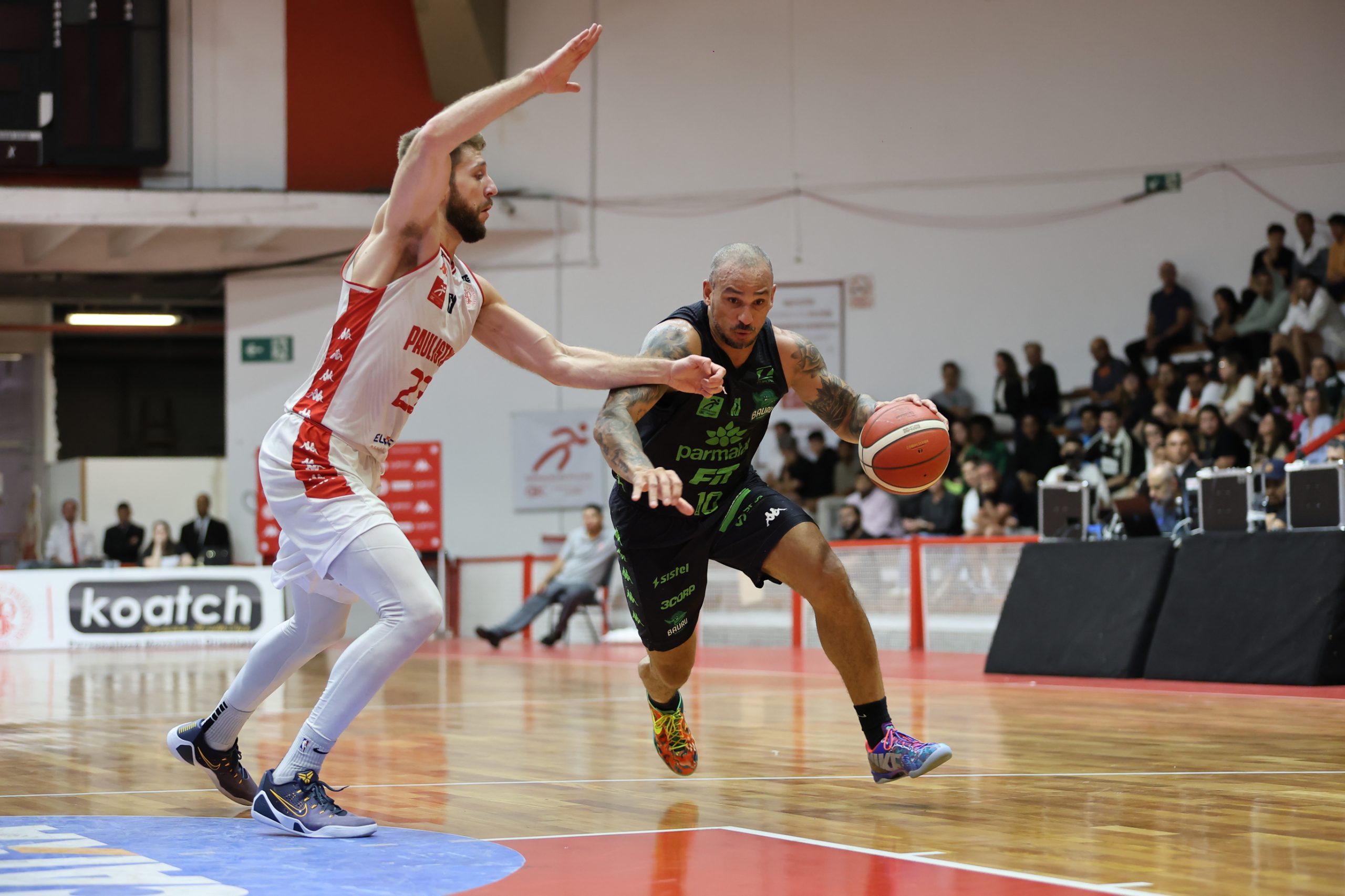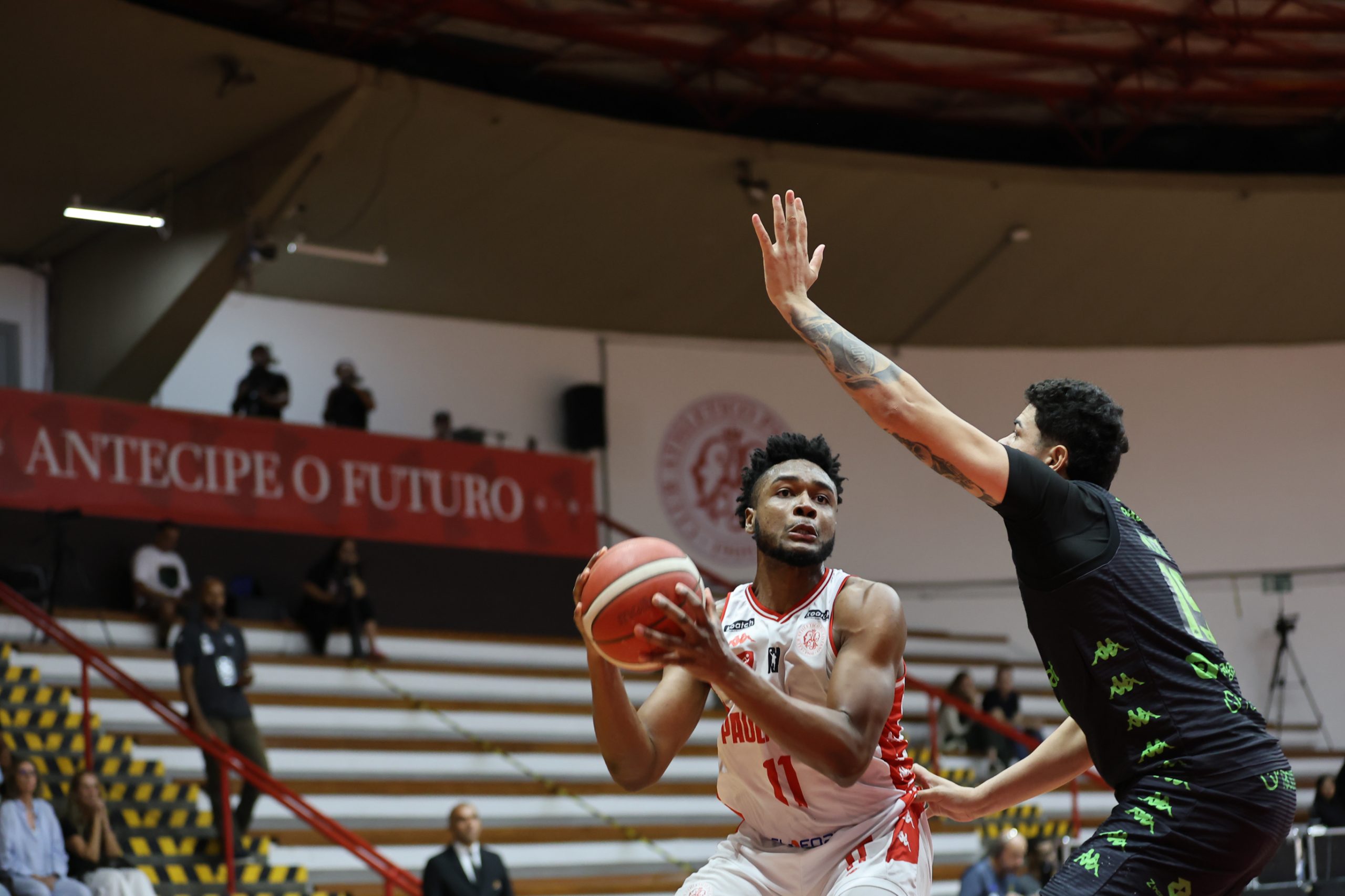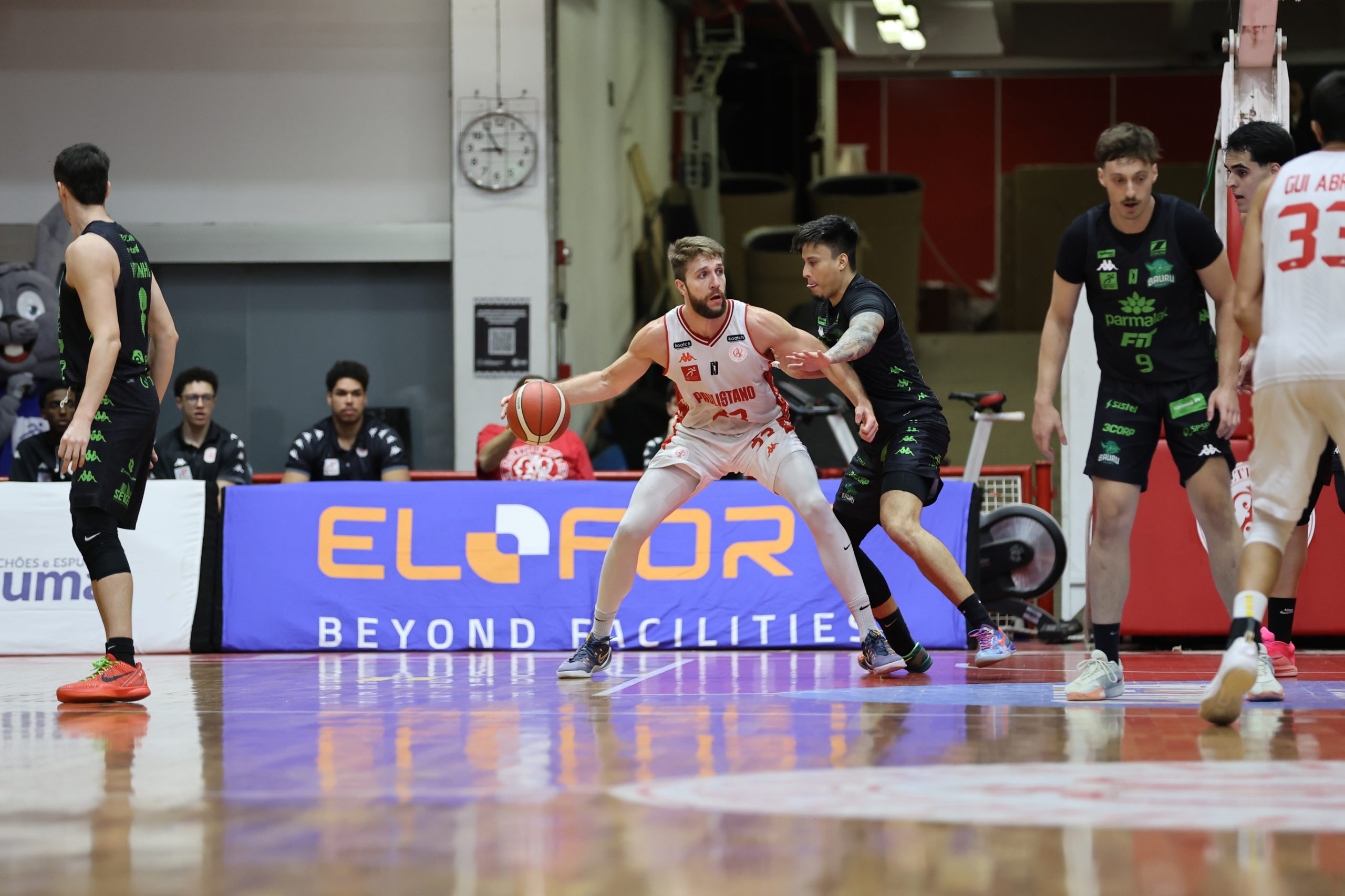 A defesa foi o principal fator de controle do Paulistano no primeiro período, não apenas pela agressividade na bola, mas sobretudo pela capacidade de adaptação ao longo das posses. A equipe mostrou uma estrutura defensiva altamente mutável, ajustando comportamentos, o que evidencia um plano de jogo muito bem preparado para a abertura da série. Essa variação constante gerou hesitações no ataque do Bauru Basket, que teve dificuldade para encontrar fluidez e tomar decisões com conforto, resultando em baixo aproveitamento e leitura comprometida. O time alvirrubro construiu uma vantagem consistente de 21 a 13 ao fim da parcial inicial.