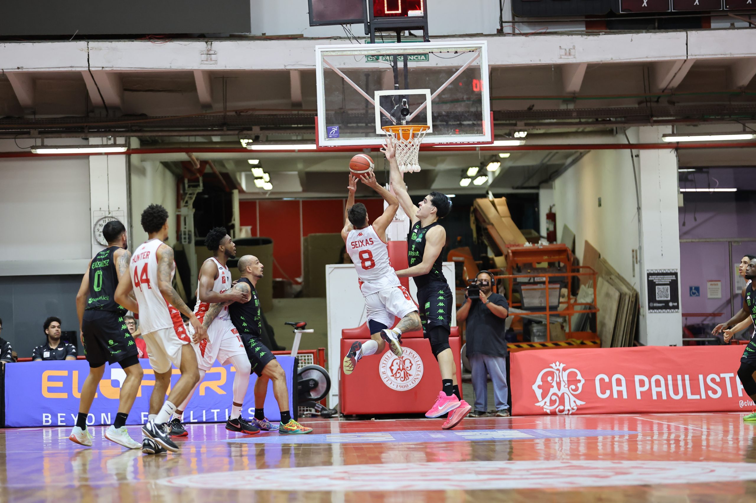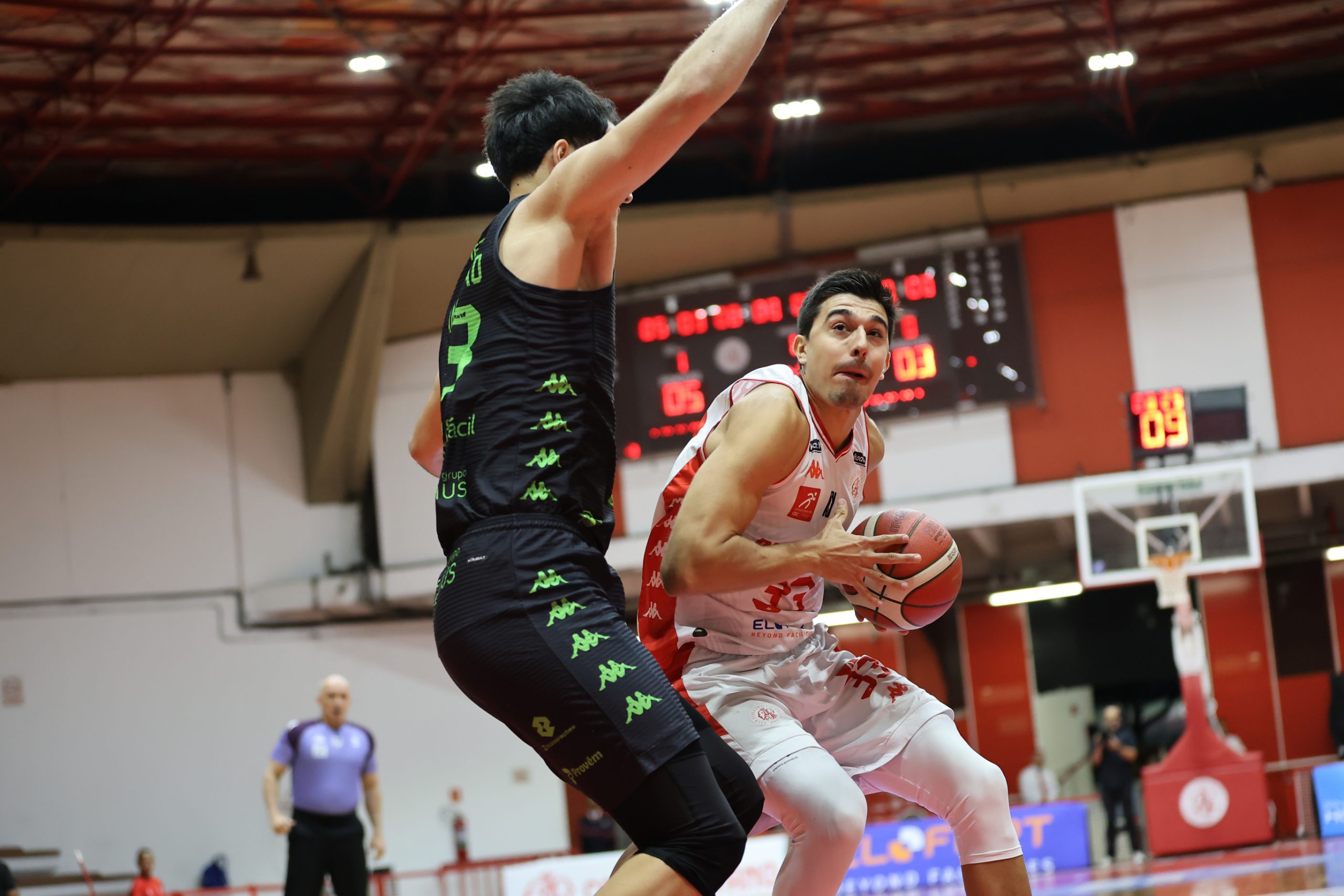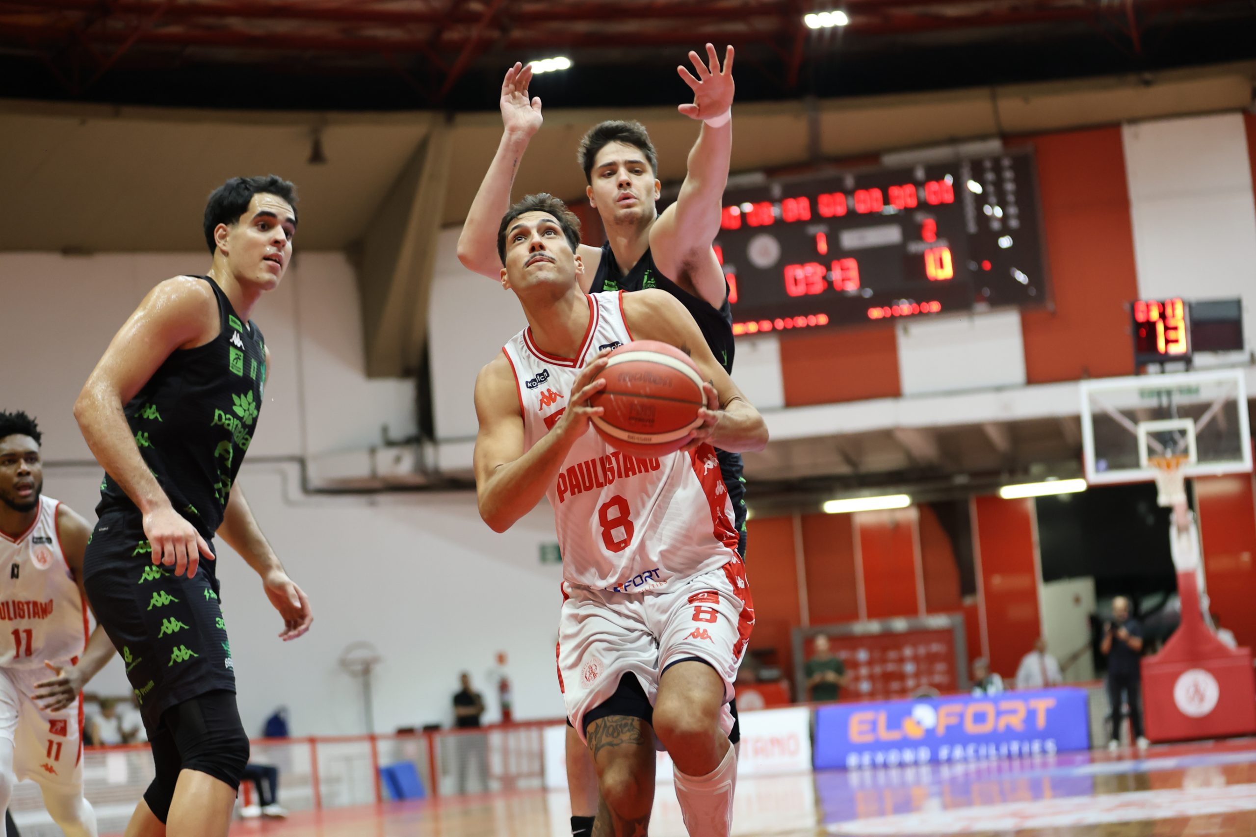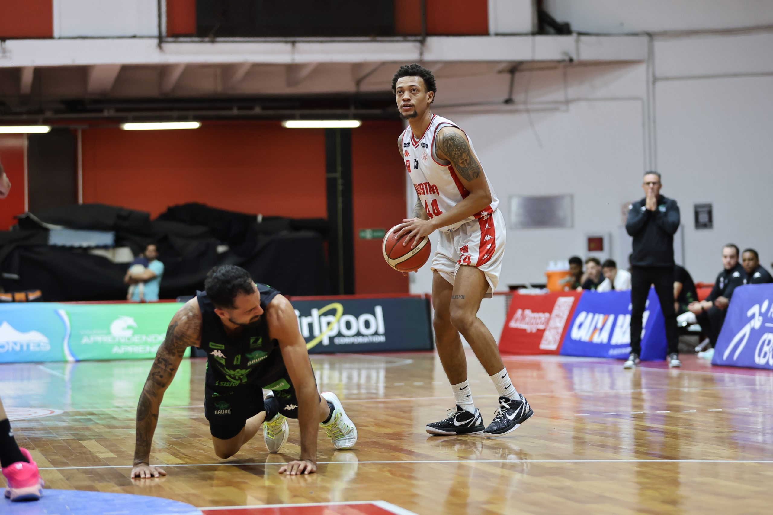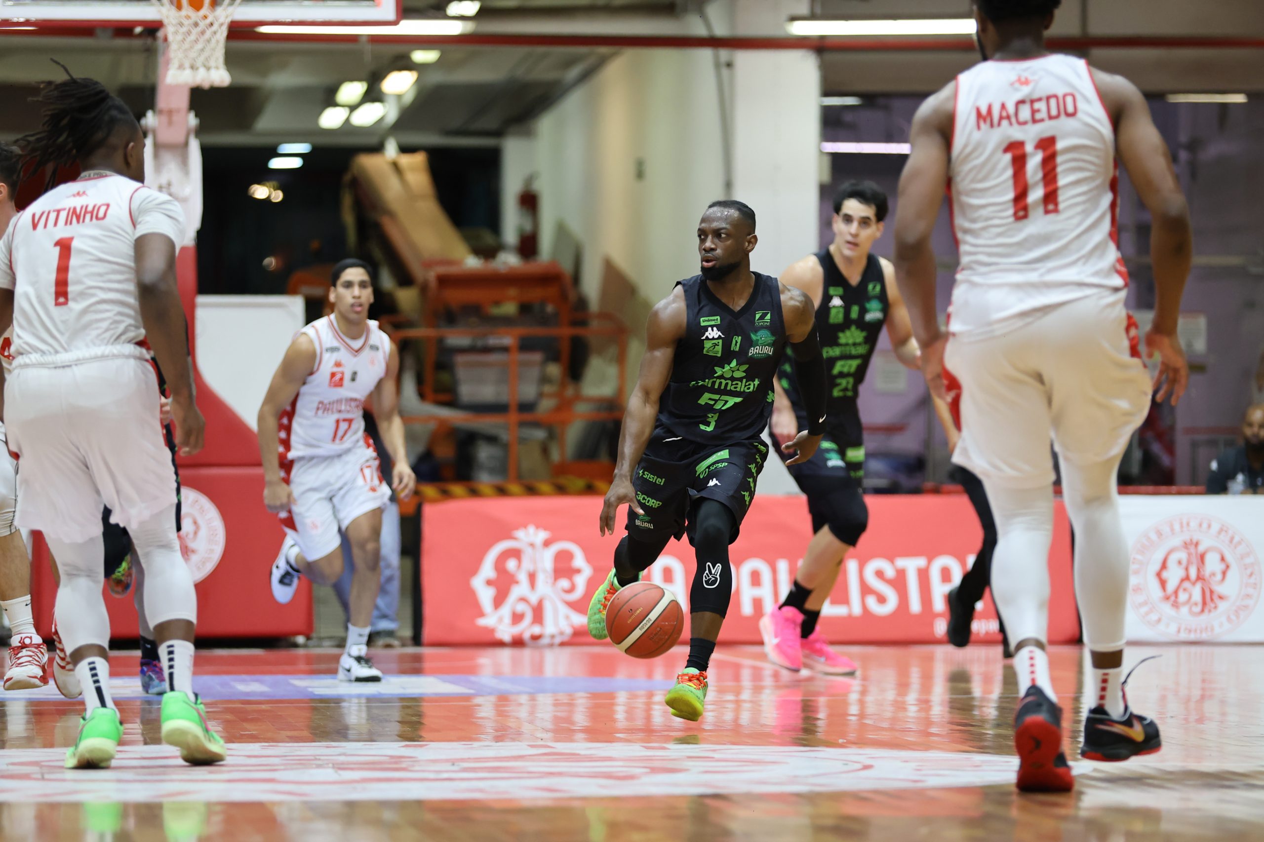 A defesa foi o principal fator de controle do Paulistano no primeiro período, não apenas pela agressividade na bola, mas sobretudo pela capacidade de adaptação ao longo das posses. A equipe mostrou uma estrutura defensiva altamente mutável, ajustando comportamentos, o que evidencia um plano de jogo muito bem preparado para a abertura da série. Essa variação constante gerou hesitações no ataque do Bauru Basket, que teve dificuldade para encontrar fluidez e tomar decisões com conforto, resultando em baixo aproveitamento e leitura comprometida. O time alvirrubro construiu uma vantagem consistente de 21 a 13 ao fim da parcial inicial.