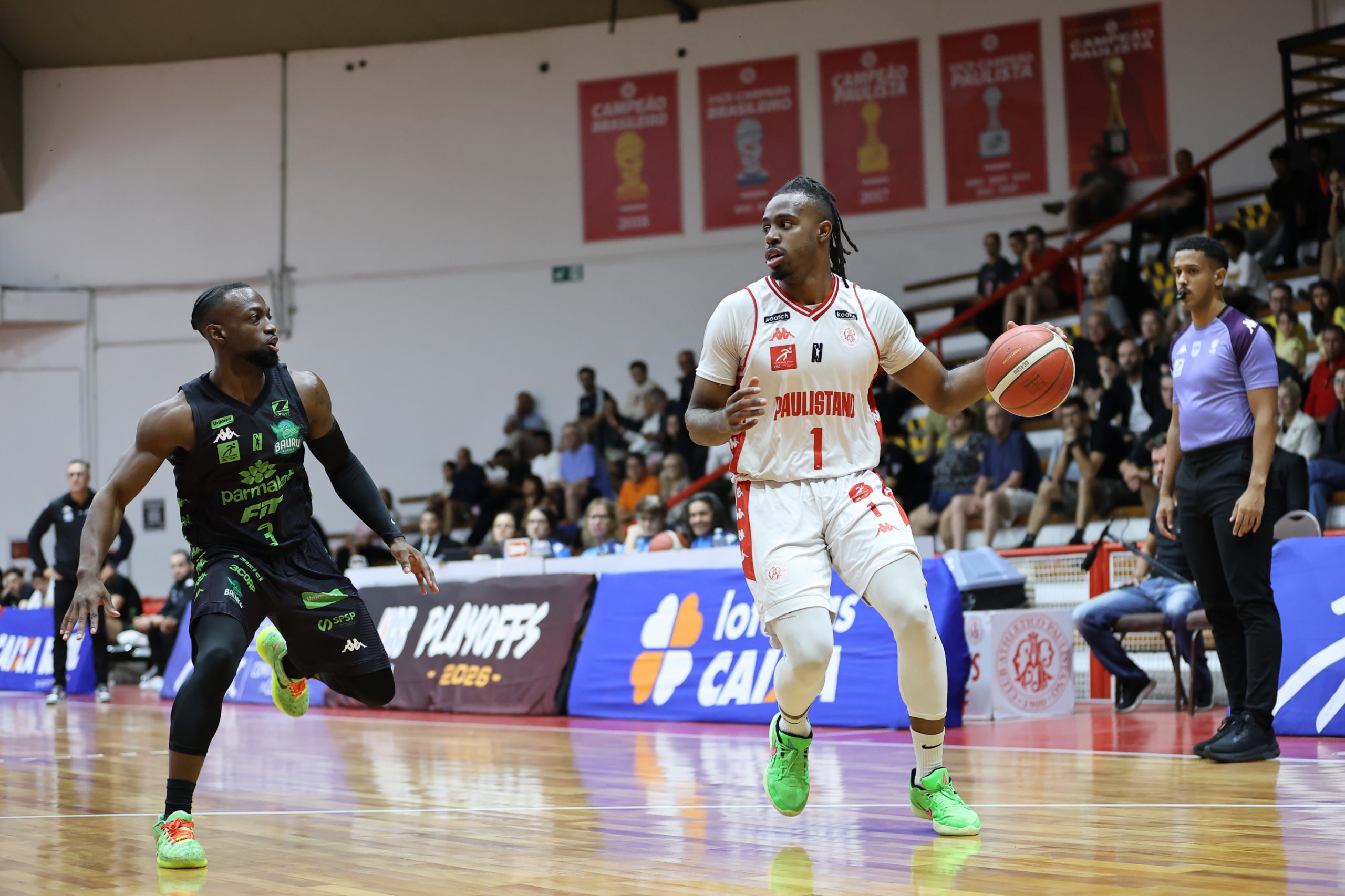 Paulistano domina o primeiro tempo, resiste à reação avassaladora do Bauru Basket no último quarto e abre 1 a 0 na série das oitavas em jogo marcado por viradas e tensão até o fim