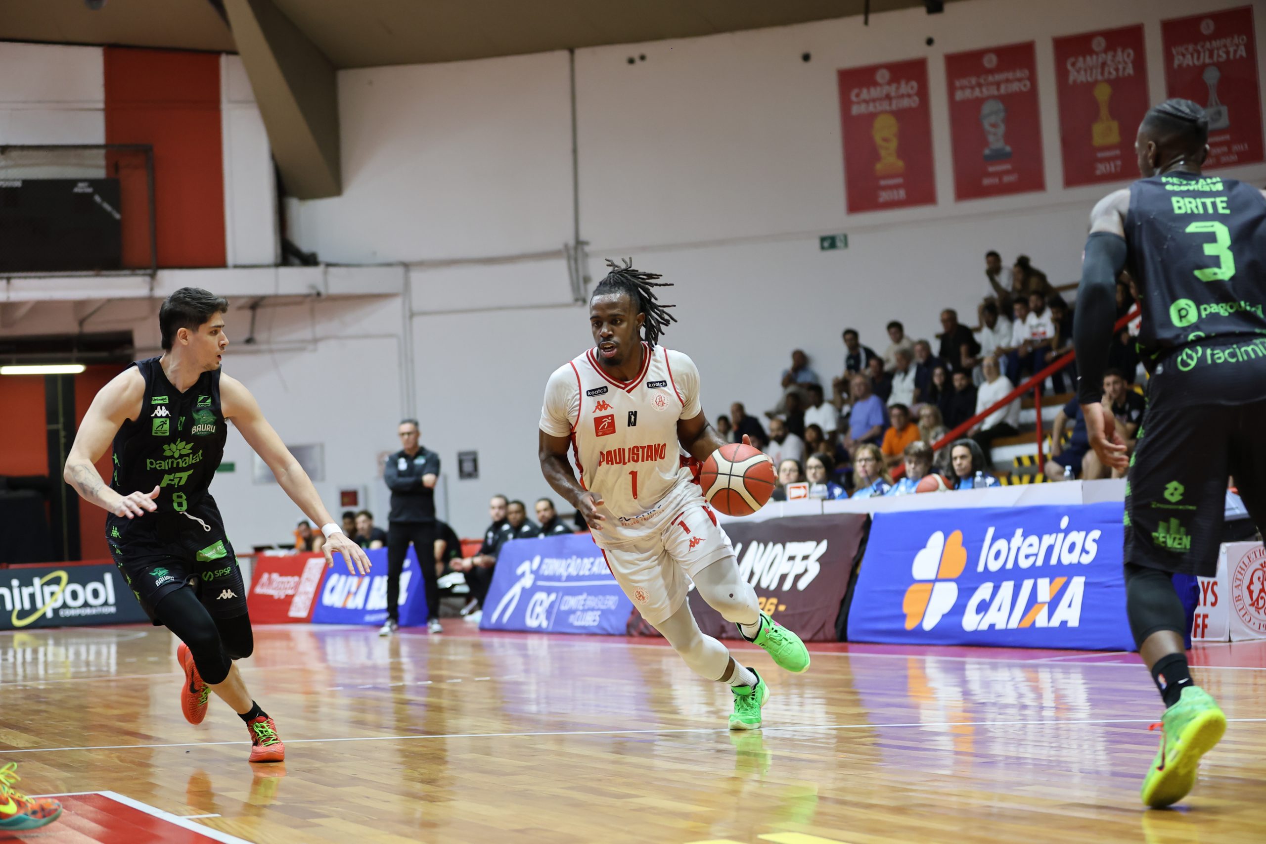 O cenário mudou rapidamente no quarto período, com o Bauru Basket retomando a intensidade nos dois lados da quadra e emplacando uma sequência de 19 a 4 para virar o placar. A partida ganhou contornos de dramaticidade, com as duas equipes elevando o nível de concentração e valorizando cada posse em um duelo de ajustes e resposta imediata. A liderança oscilou até que o Paulistano encontrou uma bola crucial com Vitinho, que converteu dois pontos sob forte marcação em momento decisivo. A emoção seguiu até o fim, com o time alvirrubro sustentando a vantagem mínima e confirmando o triunfo no primeiro jogo da série.