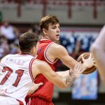 Hubner pega rebote ofensivo.
