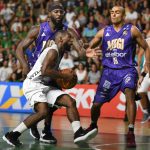 Mogi pega rebote defensivo.