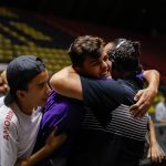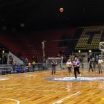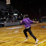 Torcedores tentam acertar a cesta do meio da quadra -