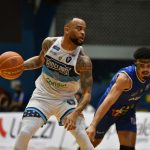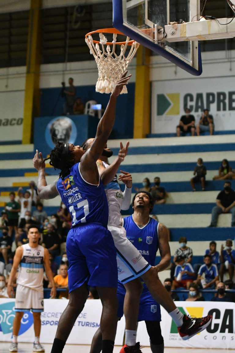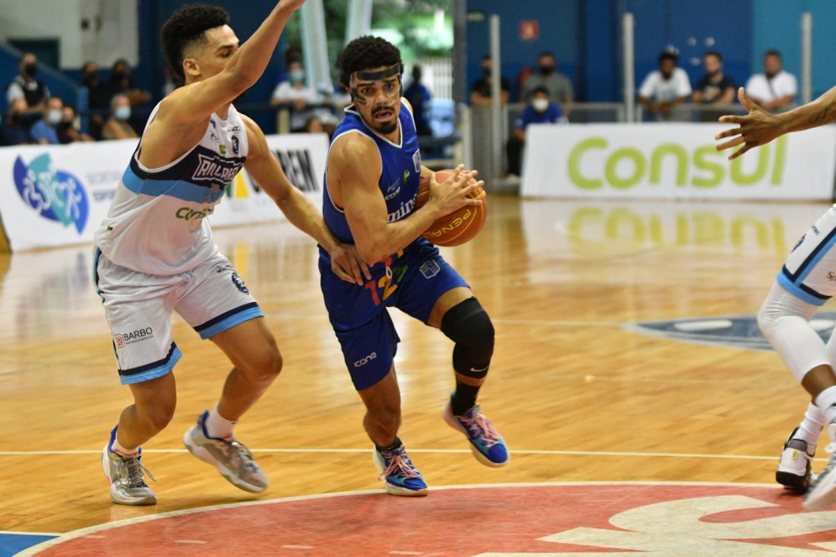 Gui Santos pega rebote ofensivo.