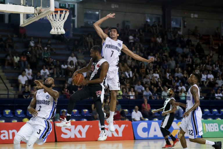 Parecia tranquilo… O Vasco se firmou na liderança logo nos minutos iniciais e chegou a abrir 20 pontos de frente durante o segundo quarto. No terceiro período, a vantagem ficou quase o tempo todo em dígitos duplos, mas o Pinheiros iniciou sua reação e baixou o prejuízo para oito pontos. Depois, na parcial final, o time paulista chegou a virar o jogo, após bola de três de Bennett (62 a 61).