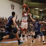 Renan acerta arremesso de dois pontos.