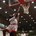 Shamell pega rebote ofensivo.