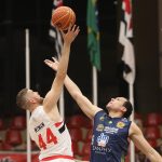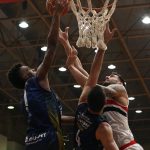 Léo Meindl pega rebote ofensivo.