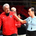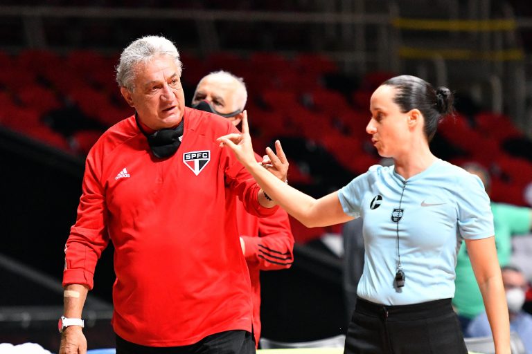 Cláudio Mortari, técnico do São paulo, e Maria Claudia Comodoro, árbitra -