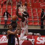 Elinho acerta arremesso de dois pontos.