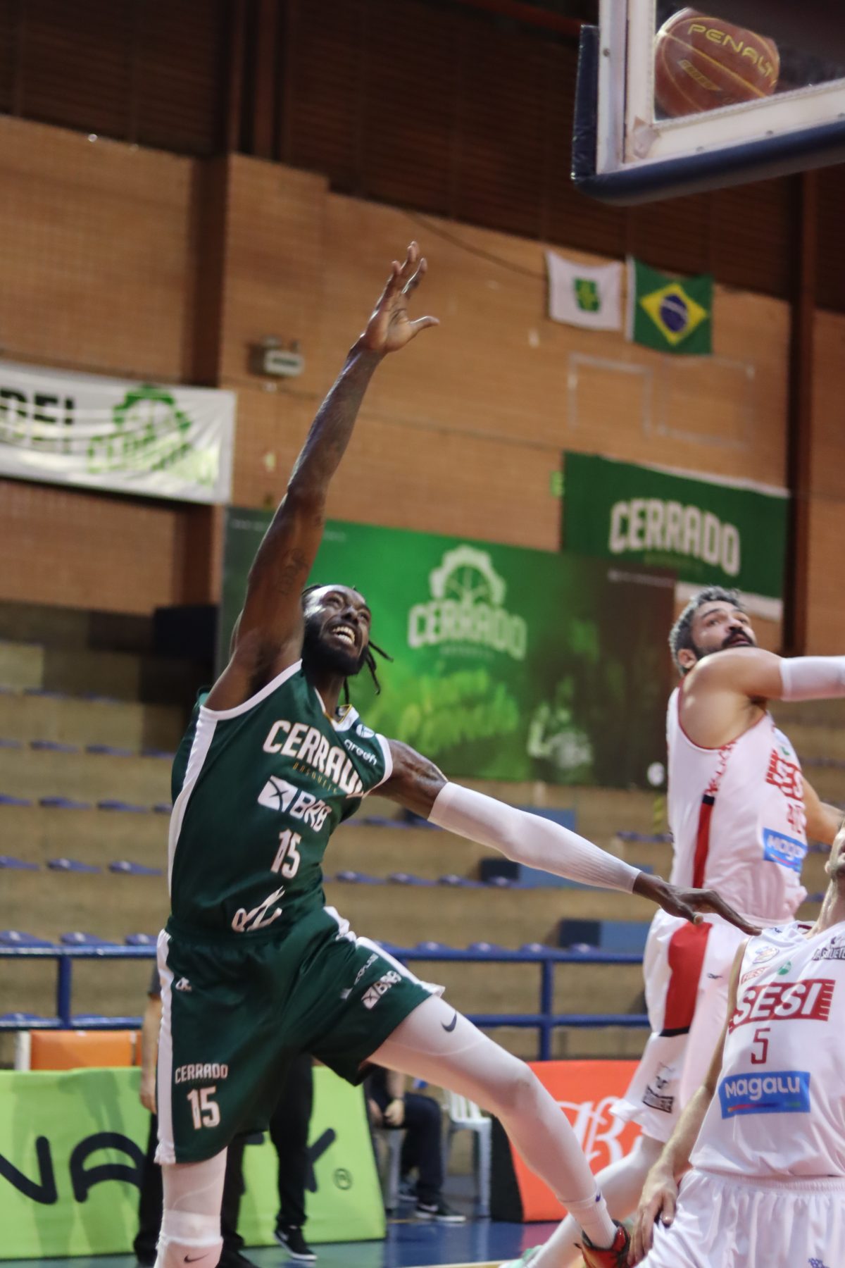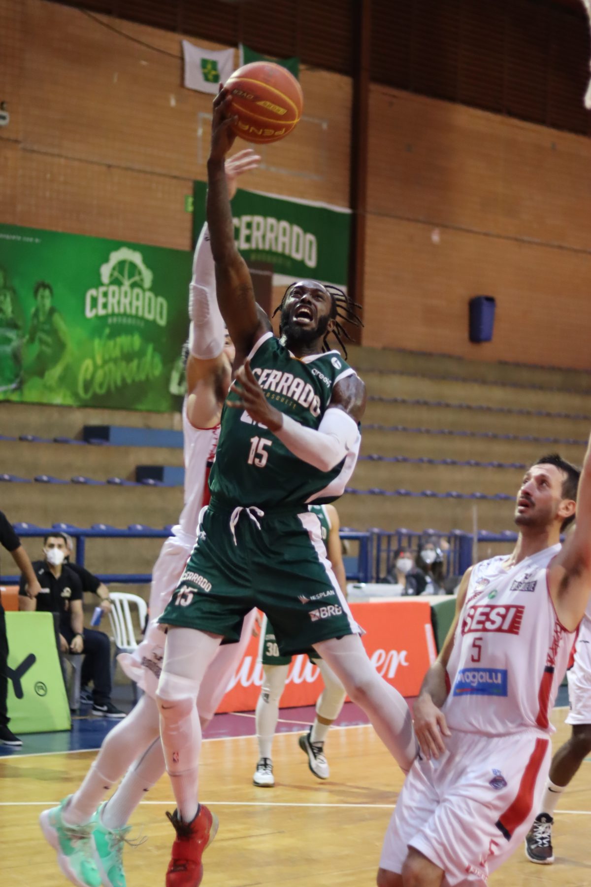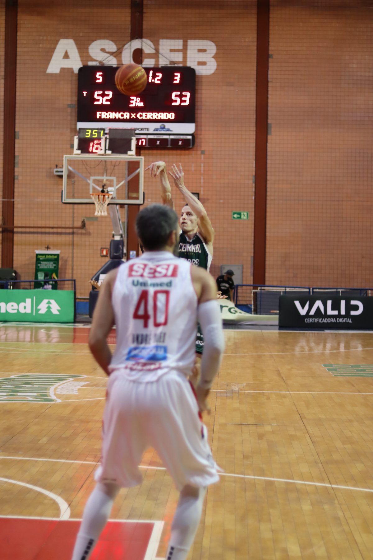 Sérgio acerta arremesso de dois pontos.