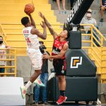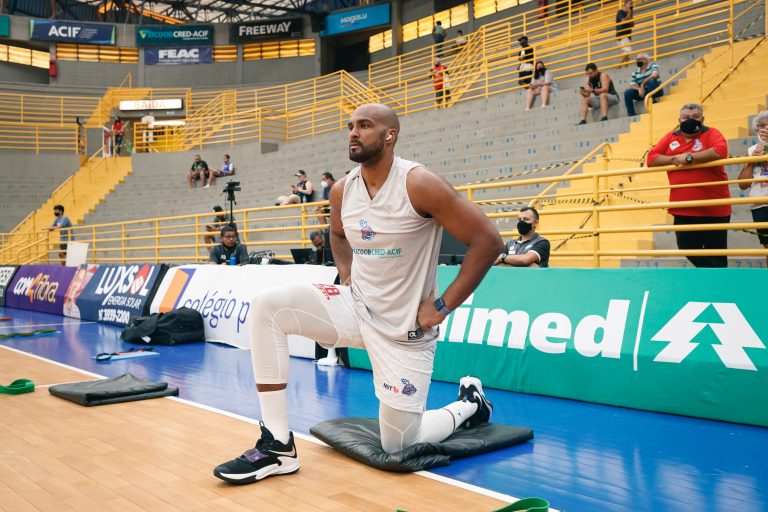 Lucas Dias pega rebote defensivo.