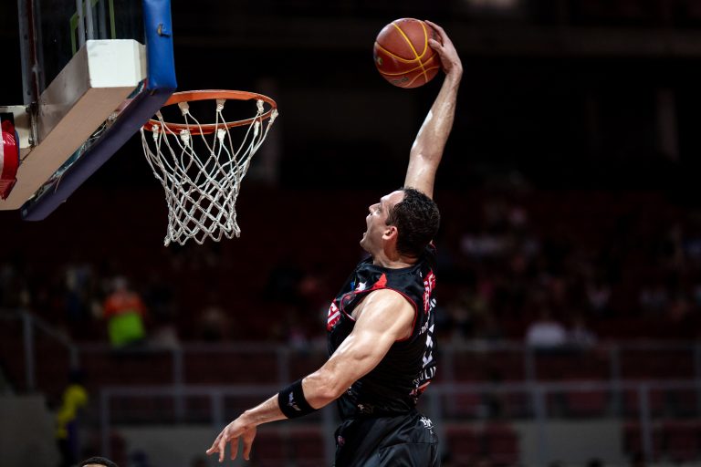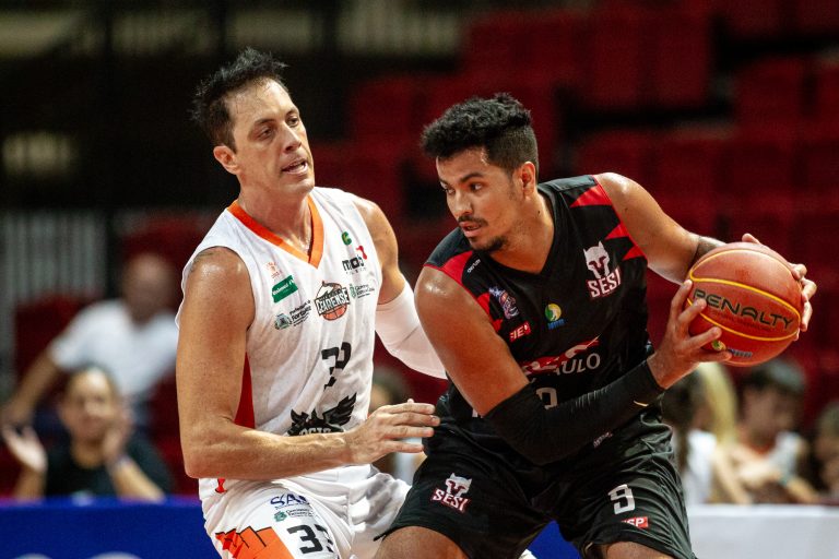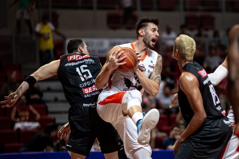 Lucas Dias pega rebote ofensivo.