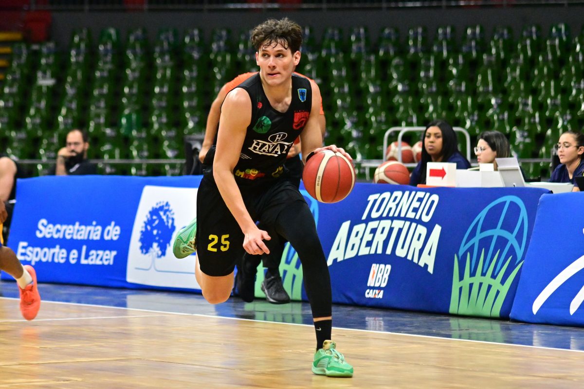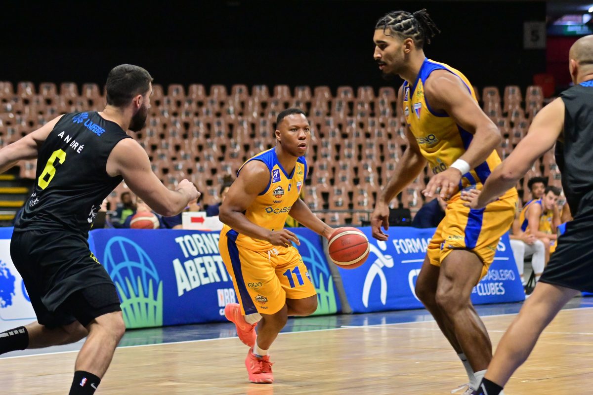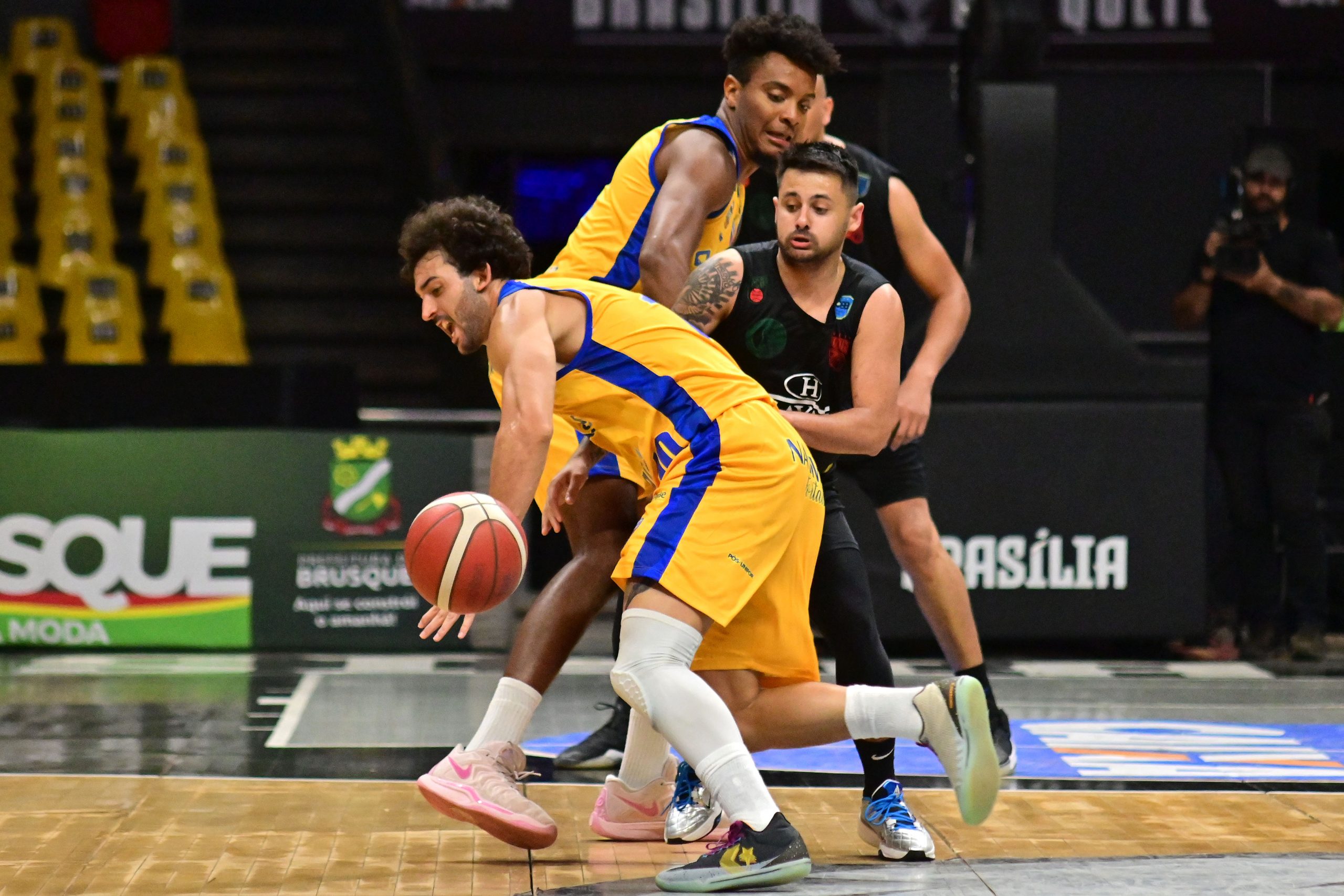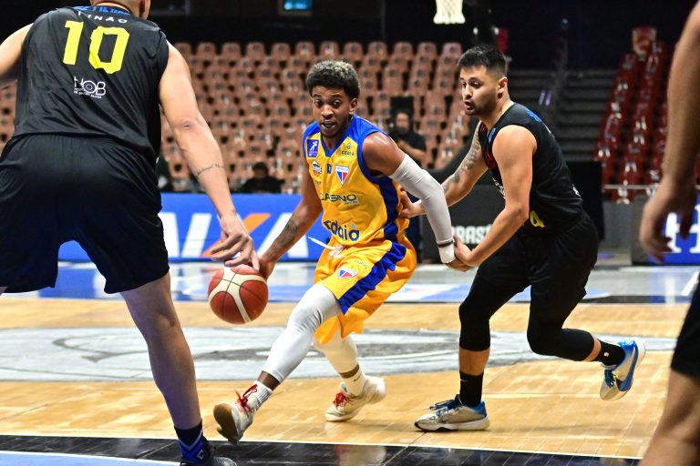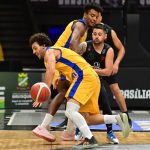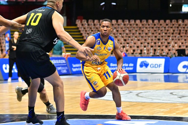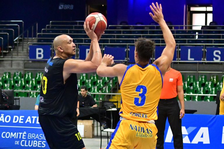 Brusque Basquete pega rebote ofensivo.