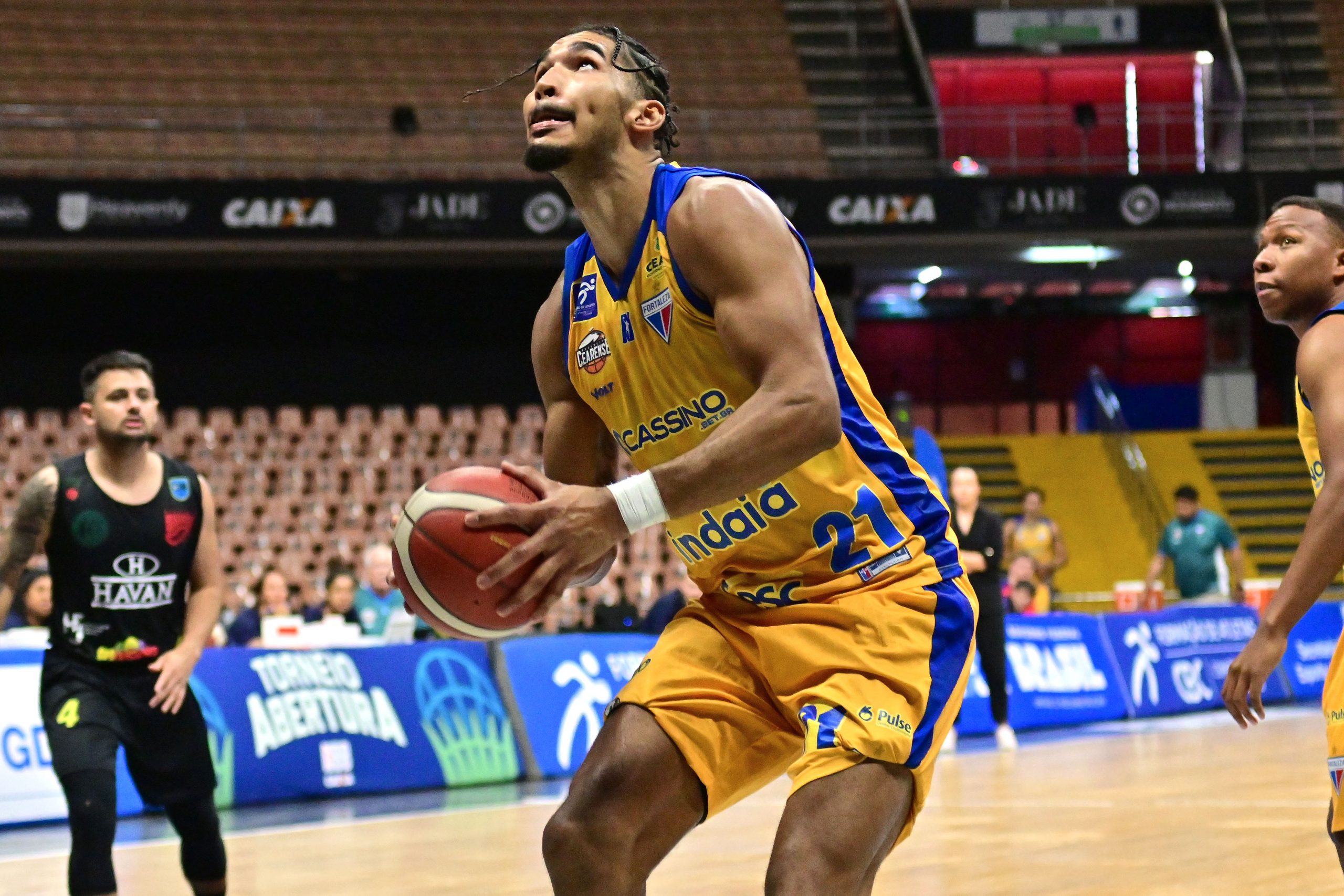 Junior acerta arremesso de dois pontos.