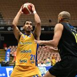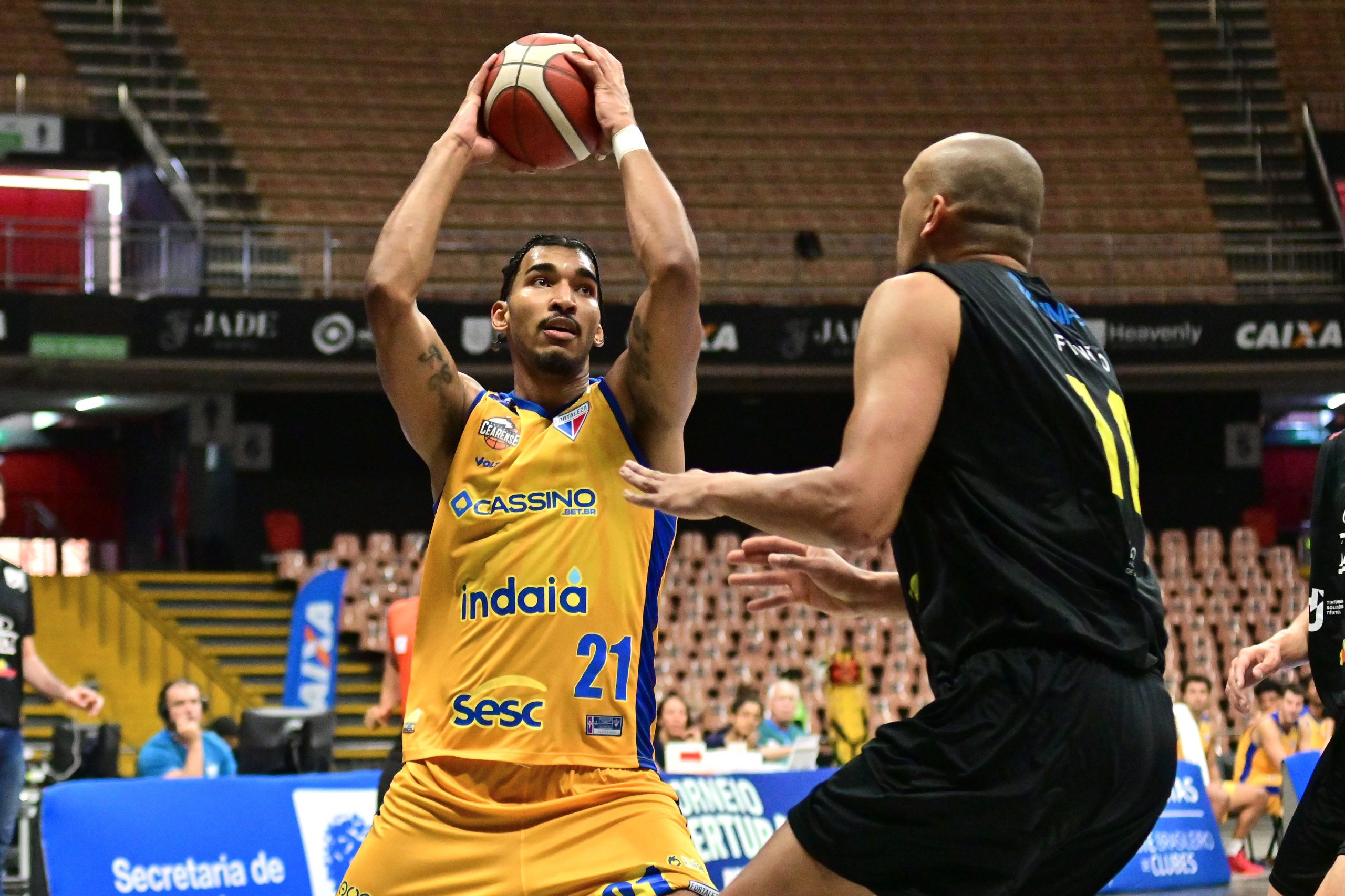Augusto Vieira erra tentativa para três pontos.
