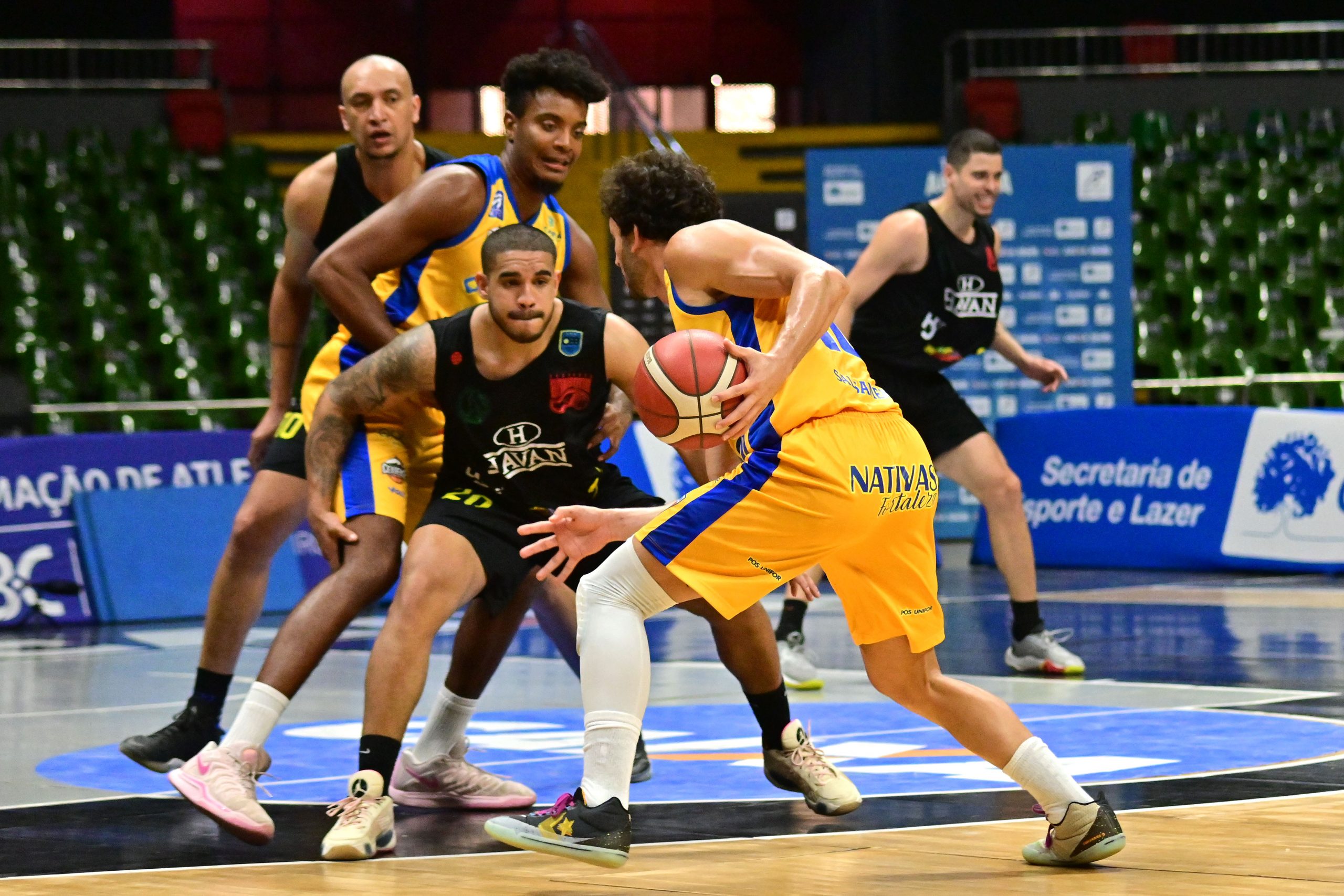 É de três! Jeanzinho acerta arremesso de três pontos.