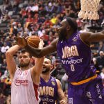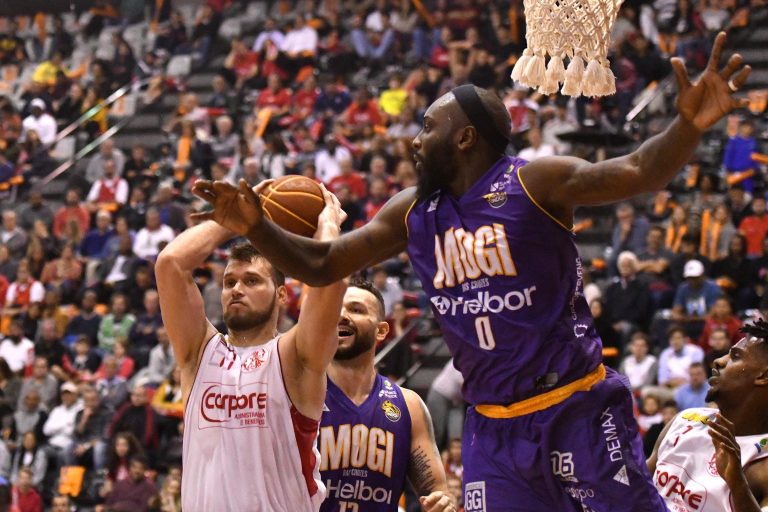 Mogi pega rebote defensivo.