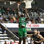 Wesley pega rebote ofensivo.