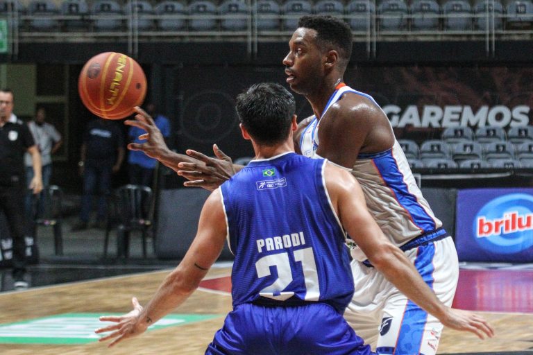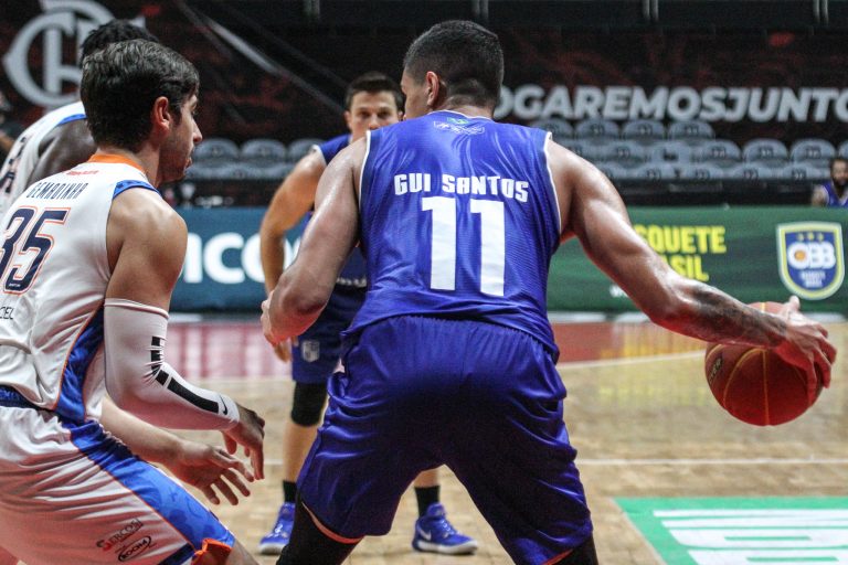 Gui Santos pega rebote ofensivo.