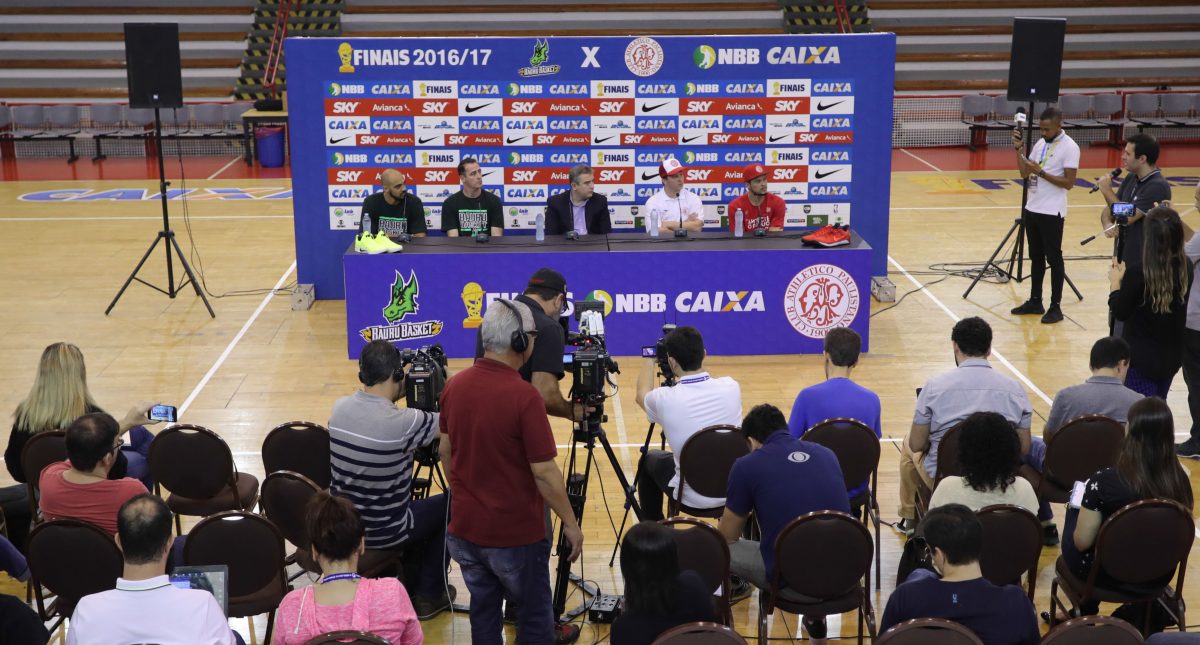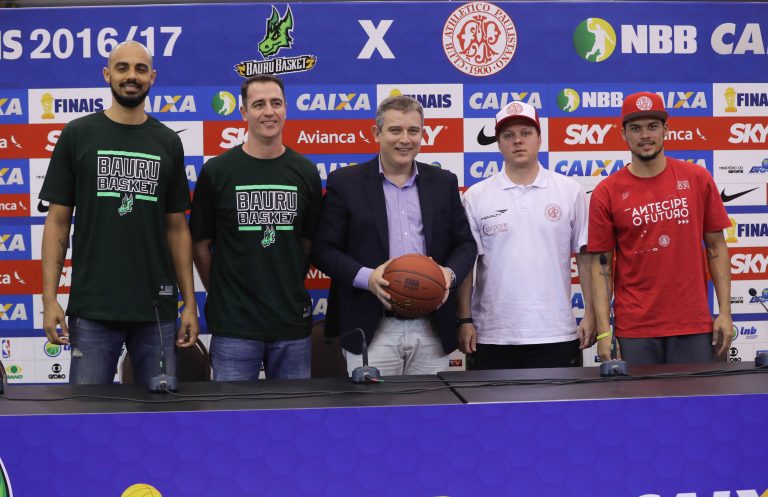 As Finais do NBB CAIXA 2016/2017 vão começar. Na manhã desta sexta-feira (26/05), no Ginásio Antonio Prado Jr, em São Paulo (SP), palco do Jogo 1, foi realizada a coletiva de imprensa que antecede o início da grande decisão entre Paulistano/Corpore e Gocil/Bauru Basket, que acontecerá neste sábado (27/05), às 14 horas, com transmissão ao vivo nos canais Band e SporTV.